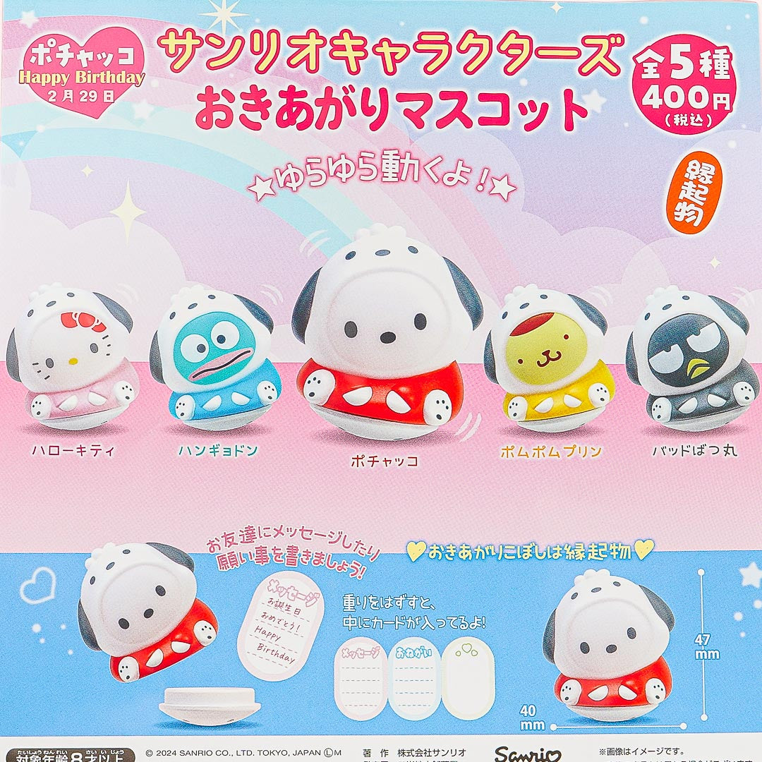 Includes: 1 x random Sanrio Characters Pochacco Woobble figure and 1 x gachapon capsule