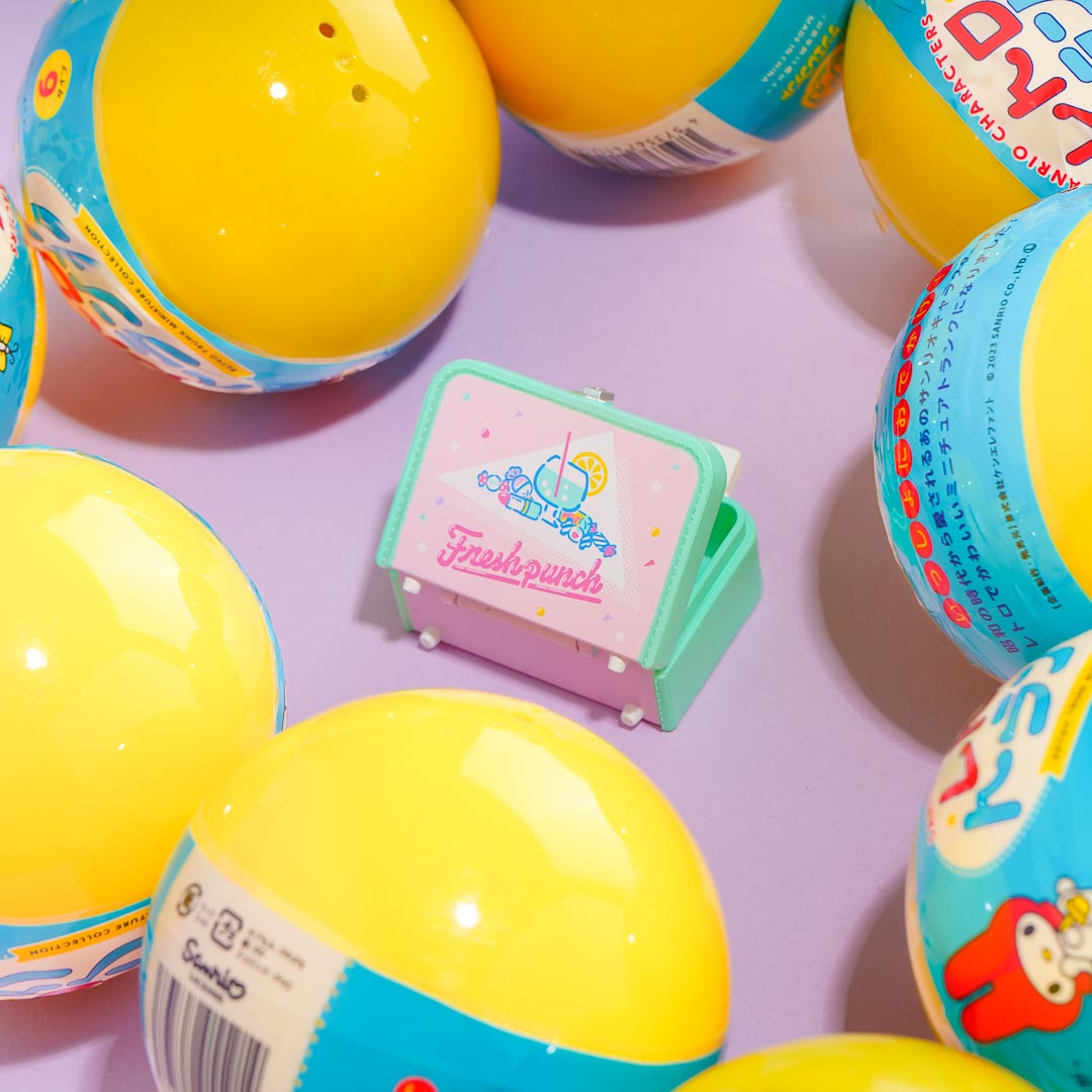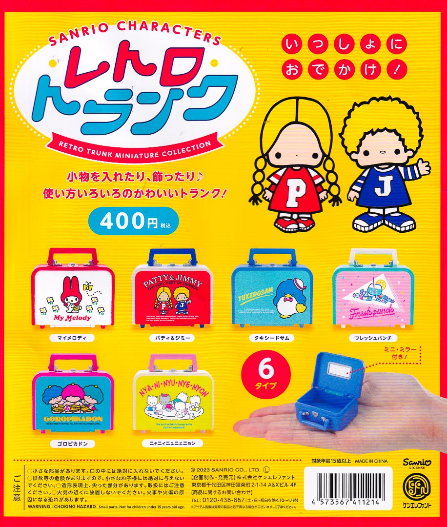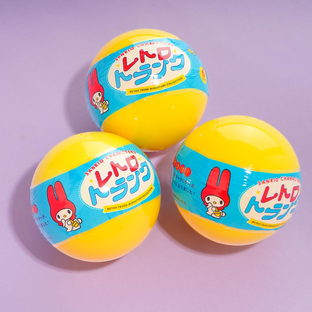 Have fun collecting this kawaii retro trunk miniature featuring a cute Sanrio character! This cute collectible comes from the "Sanrio Characters Retro Trunk Miniature Gachapon" series. It comes in a yellow gachapon capsule so the trunk miniature design you'll get will be a fun random surprise!