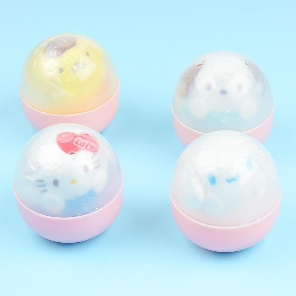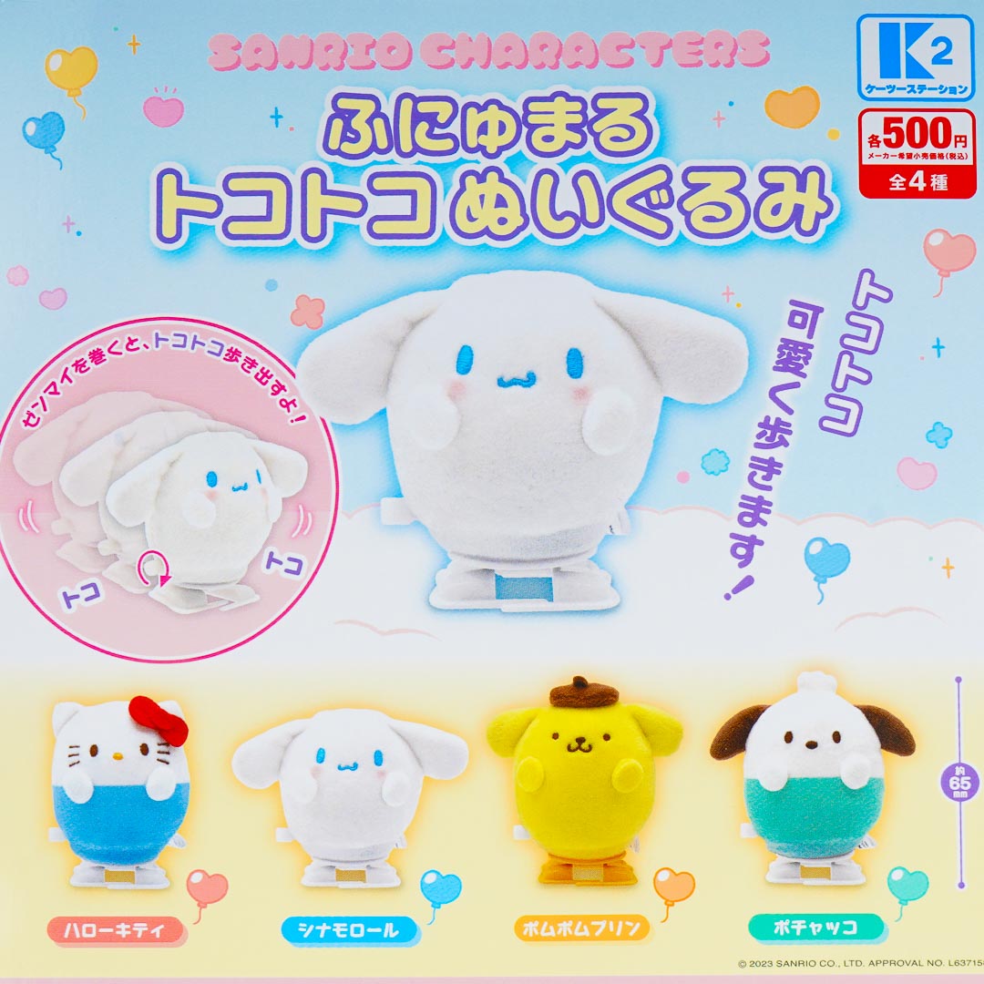 Get a surprise round and fluffy Sanrio Character plushie from this gachapon capsule! The toy has a wind-up mechanism that makes the cute character walk around on a flat surface.