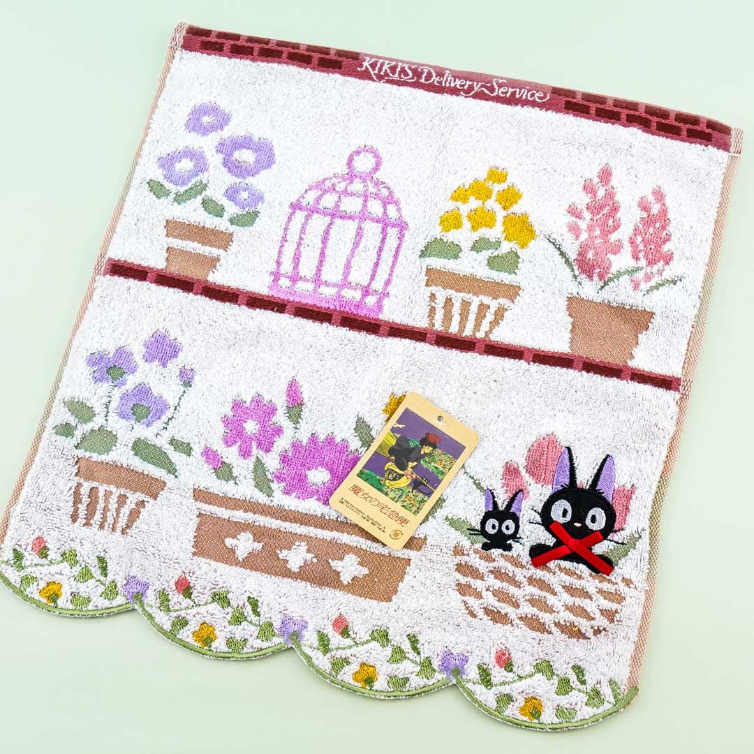 Use this super cute cotton towel to dry your hands after washing! It has embroidery of Jiji from Kiki's Delivery Service playing among the flowers in a garden.