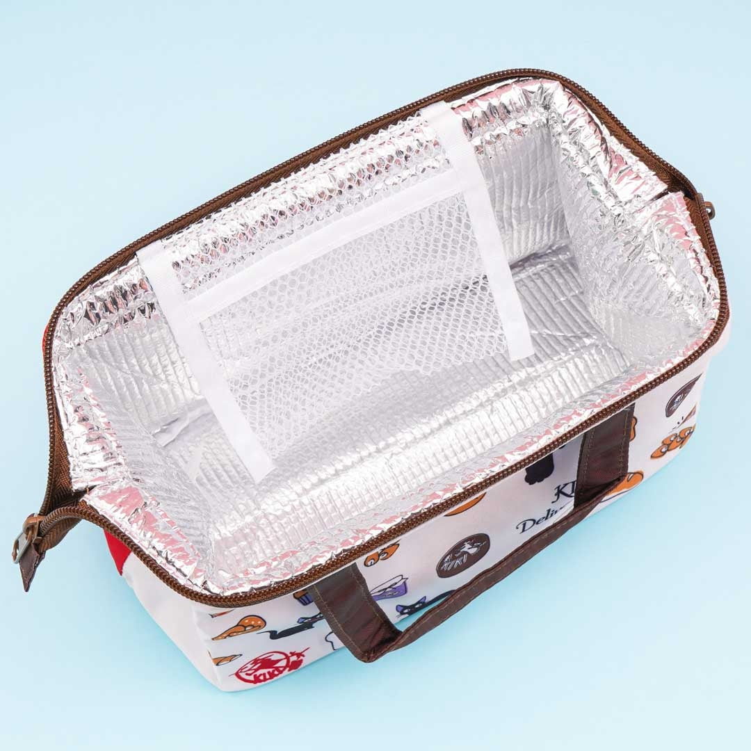 Place your bento box and chopstick set inside this cute lunch bag! This clasp-type bag is decorated with prints of Jiji from the Ghibli classic, Kiki's Delivery Service surrounded by bread. It has a W-fastener closure, a mesh pocket for ice packs, and aluminum lining that keeps food nice and fresh.
