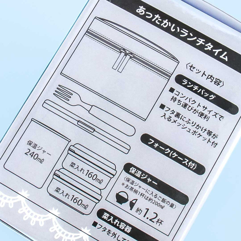 Includes: 1 x thermal jar that retains heat, 2 x small lunch boxes, 1 x stainless steel fork, 1 x carrying case, 1 x lunch bag
