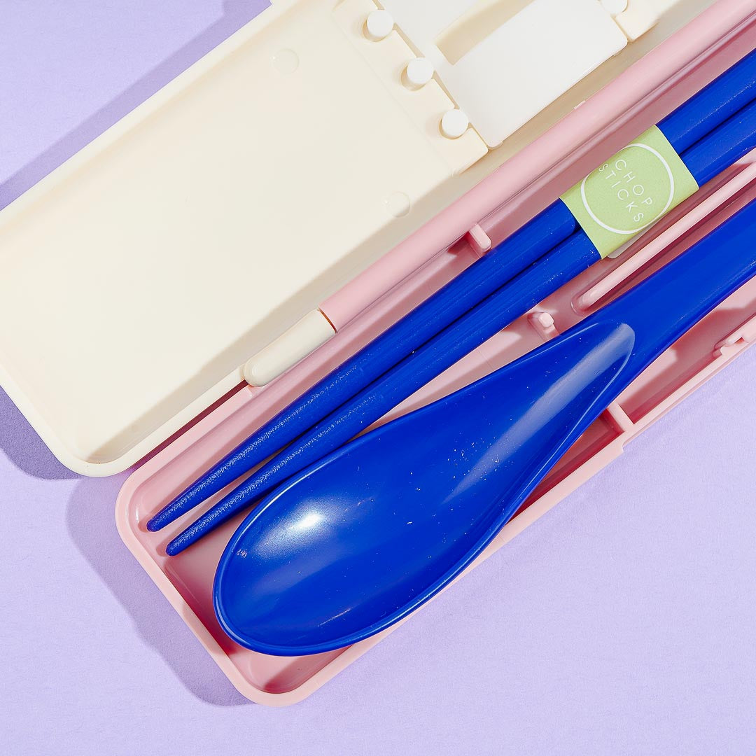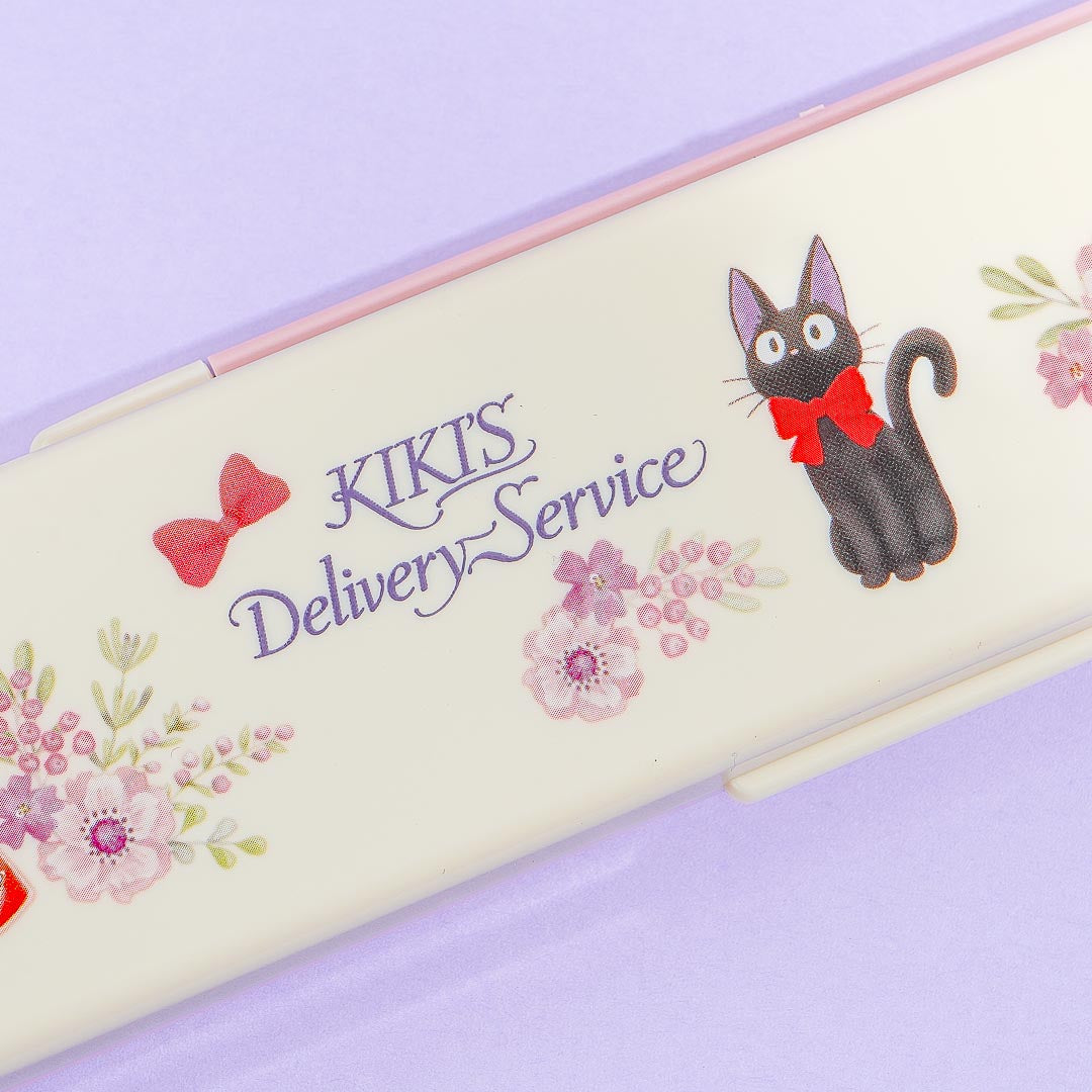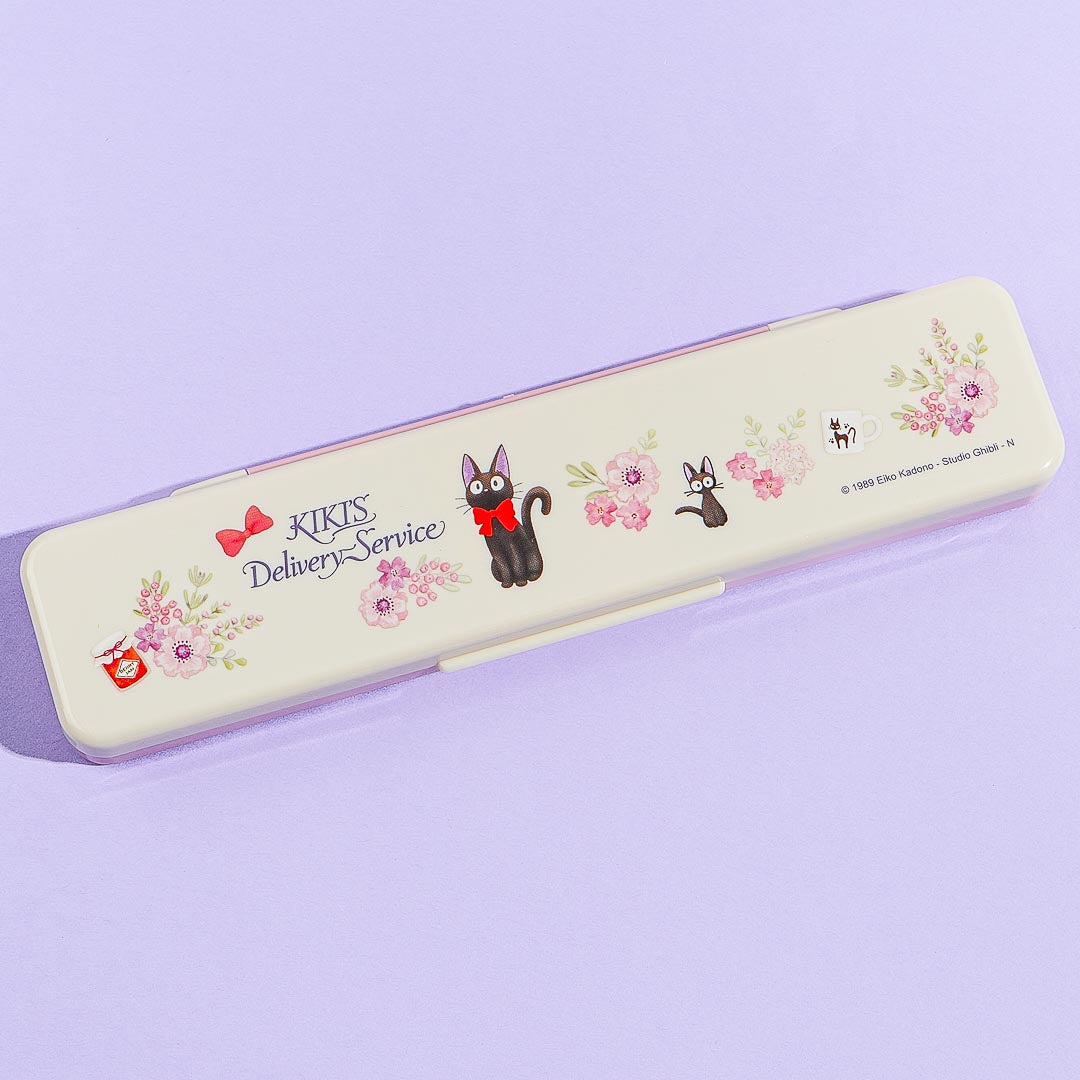 This super cute utensil set features prints of Jiji from the movie Kiki's Delivery Service. The chopsticks and spoon come in a cute carrying case with a silicone cushion that prevents clicking noises.