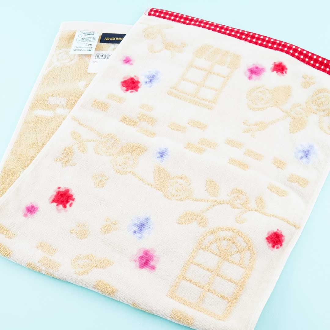 Use this super-soft long towel made of 100% cotton to dry off after a quick swim! It’s decorated with illustrations of Kiki and Jiji from the animated Ghibli film “Kiki’s Delivery Service,” zipping across a brick wall full of vines.