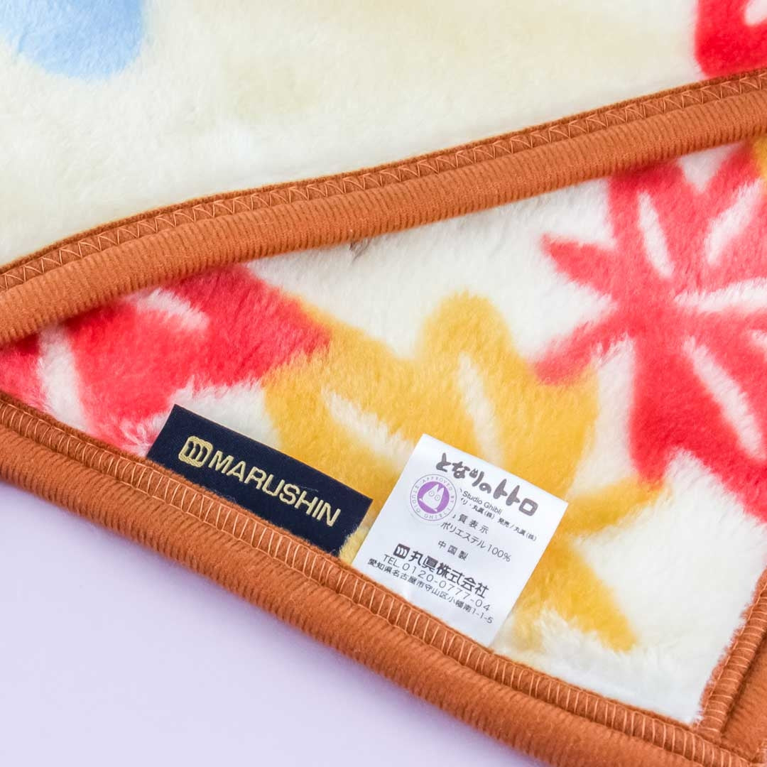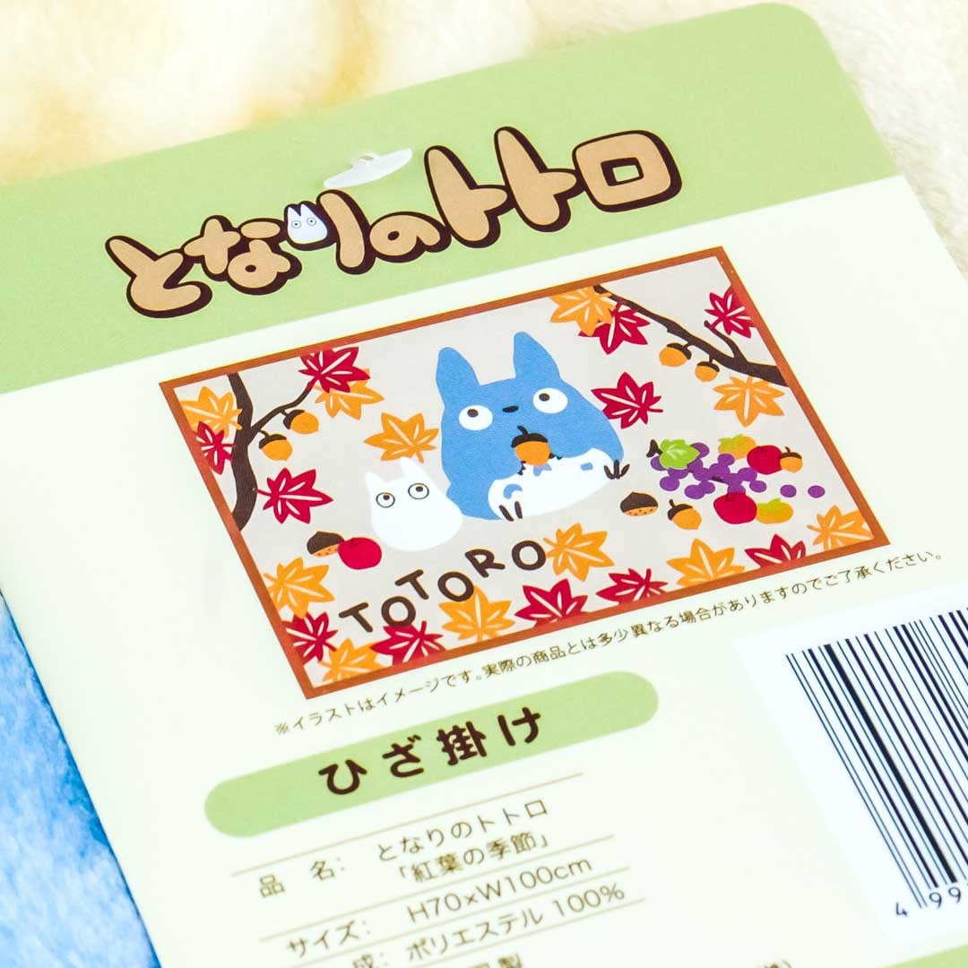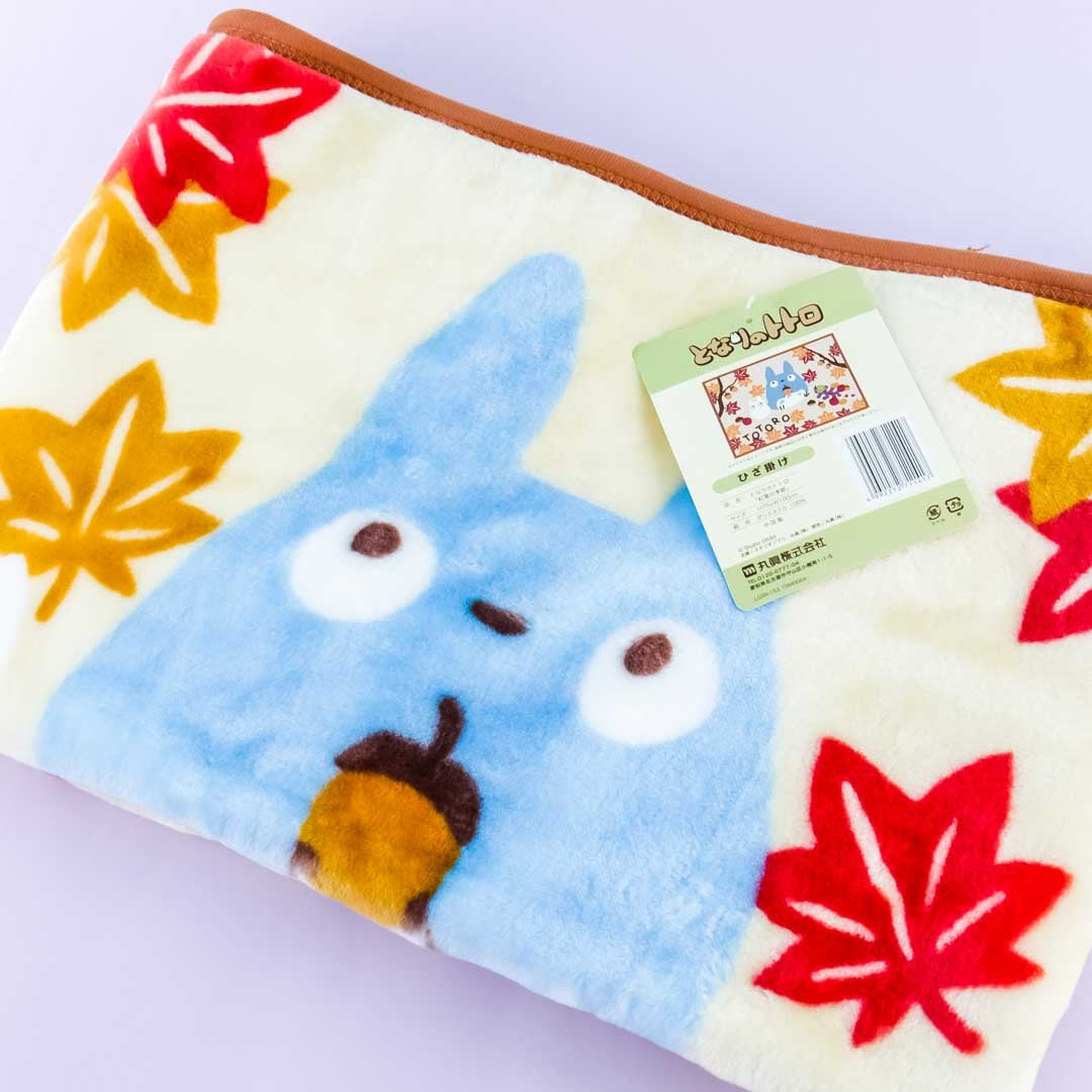 • A super cute fluffy blanket illustrated with My Neighbor Totoro characters enjoying the autumn season