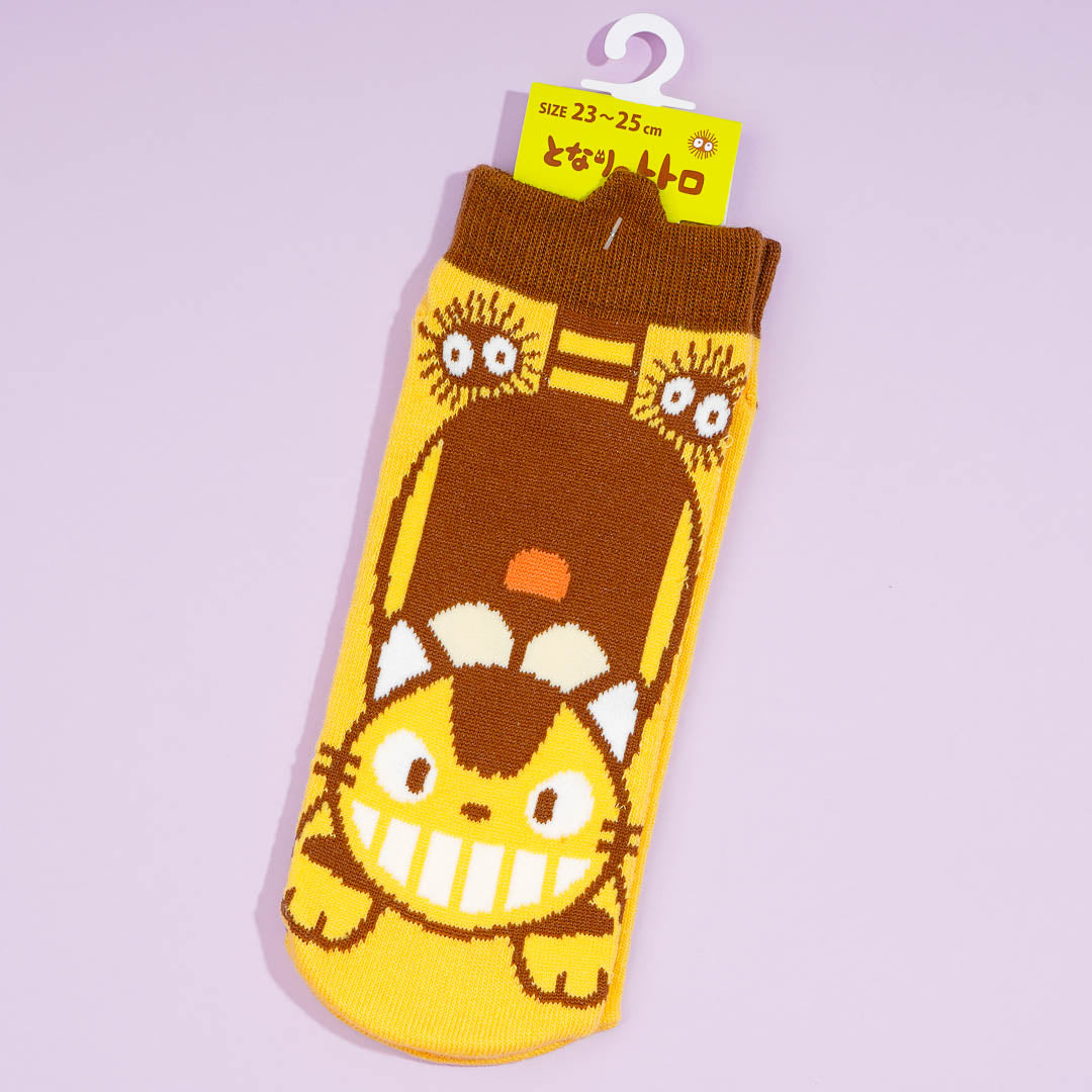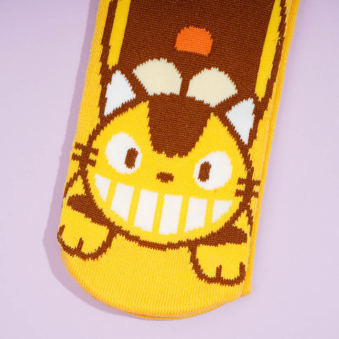 Add a cute touch to your outfit when you wear this pair of kawaii socks! It features a print of Catbus from the movie My Neighbor Totoro.