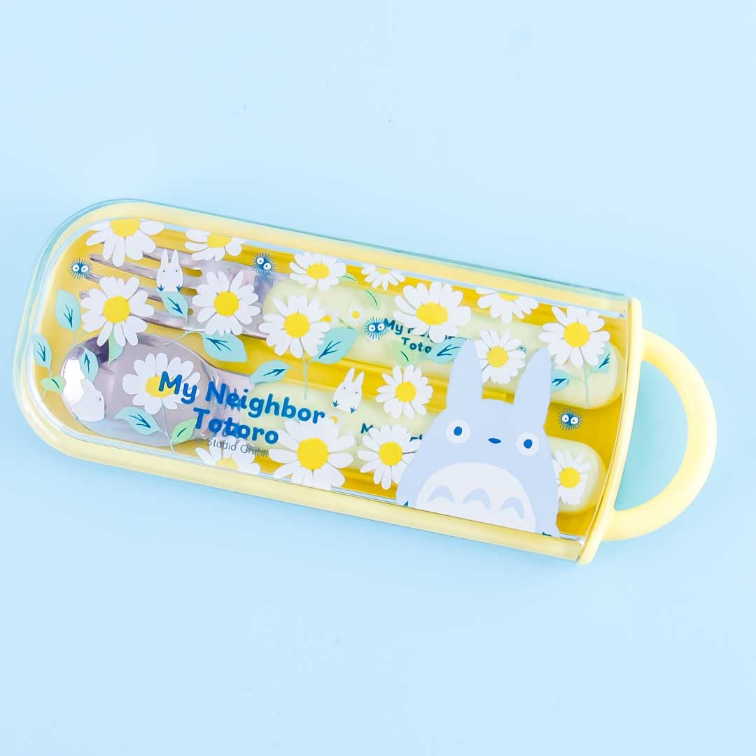 • A cutlery set with illustrations of Totoro, soot sprites, and daisies