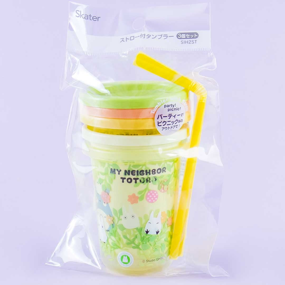 Use this super cute cup set for your next juice party with your friends! It has 3 cups featuring different prints of "My Neighbor Totoro" characters in a field of flowers. Each cup comes with a straw and a lid to prevent spilling.