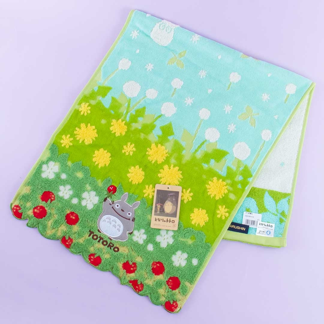 This super cute cotton towel features prints of "My Neighbor Totoro" characters playing in a field of flowers and fruits. Use this kawaii long towel to dry yourself off after a fresh shower!
