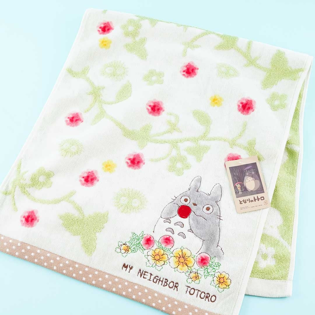 Use this super-soft towel made of 100% cotton when you dry off after a relaxing warm bath! It features an illustration of Totoro harvesting lots of ruby red fruits on the vines.