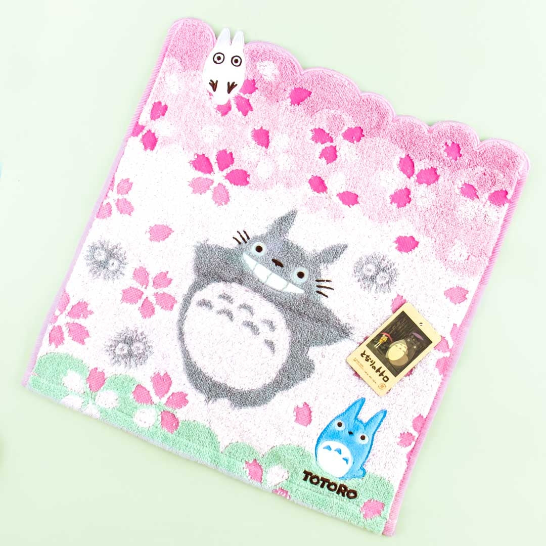 Dry off your hands using this super kawaii cotton towel! This hand towel features prints of characters from the classic Ghibli movie "My Neighbor Totoro" playing with sakura blossoms.
