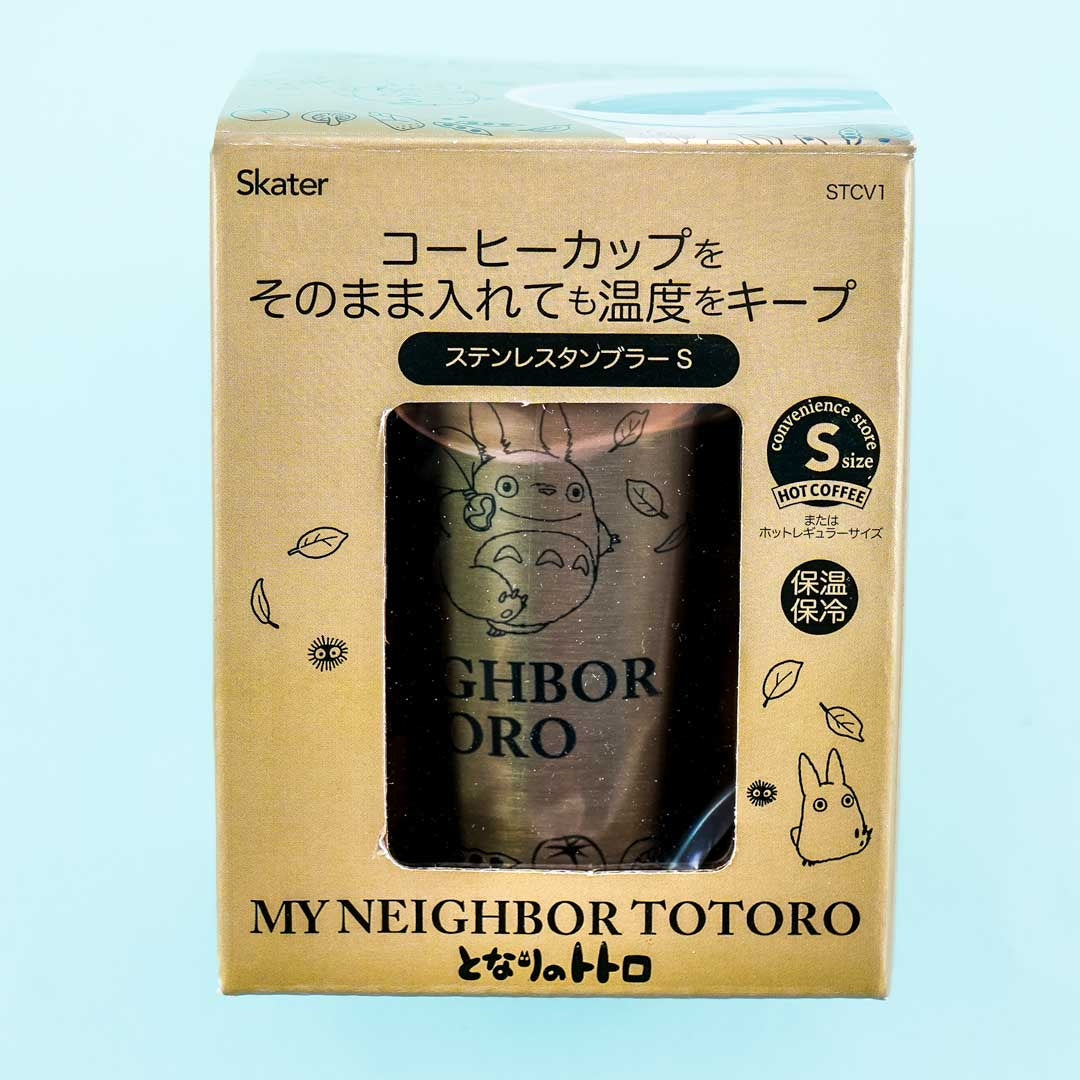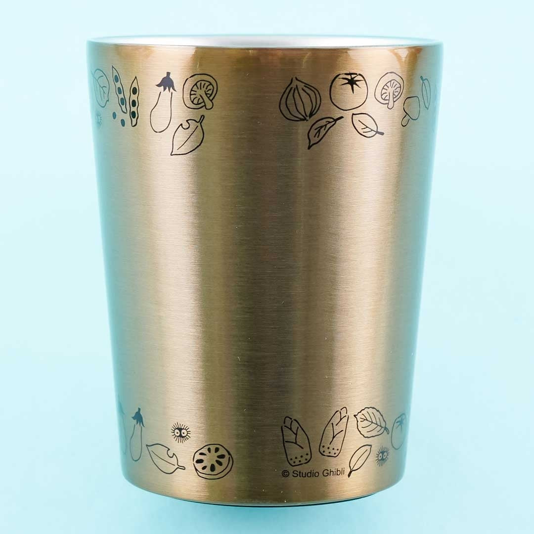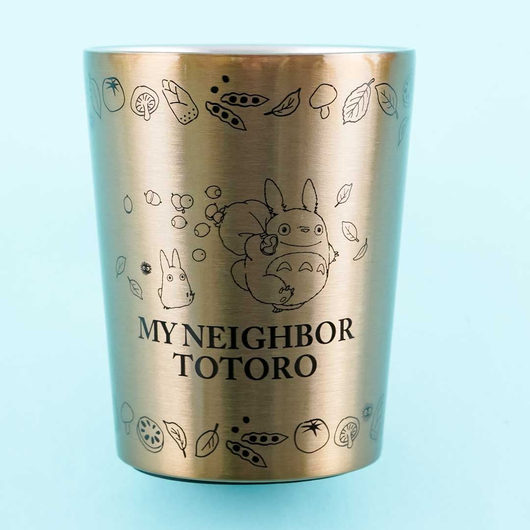 • A stainless steel tumbler featuring prints of My Neighbor Totoro characters with veggies