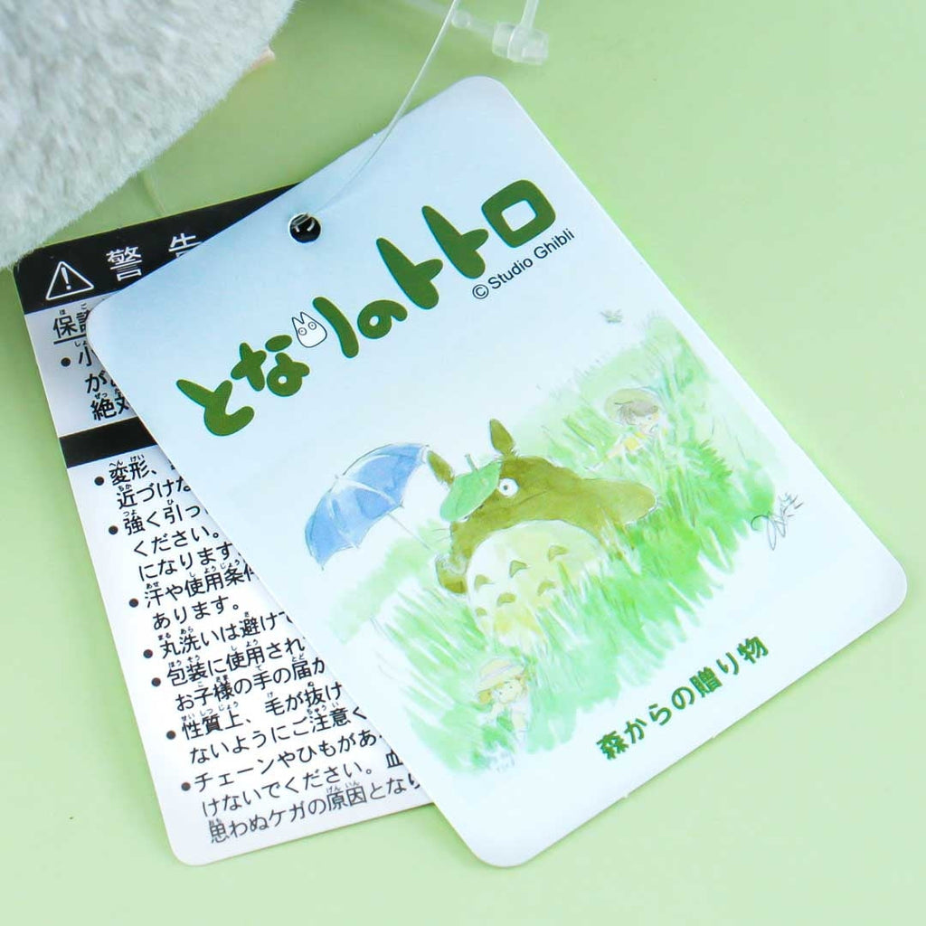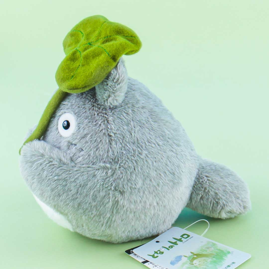 Play pretend taking cover during a downpour with Totoro! This medium-sized fluffy My Neighbor Totoro plushie holds a leaf umbrella.