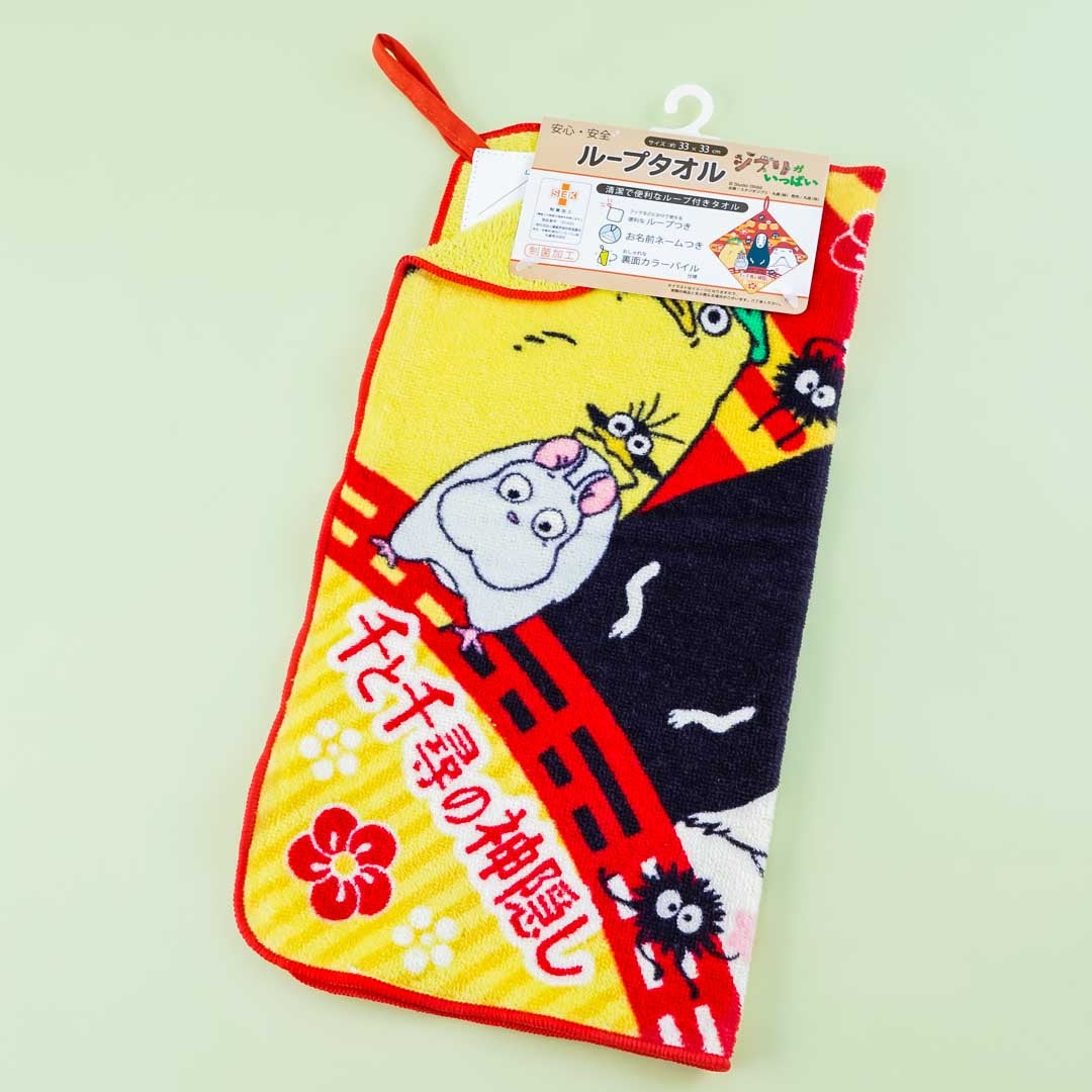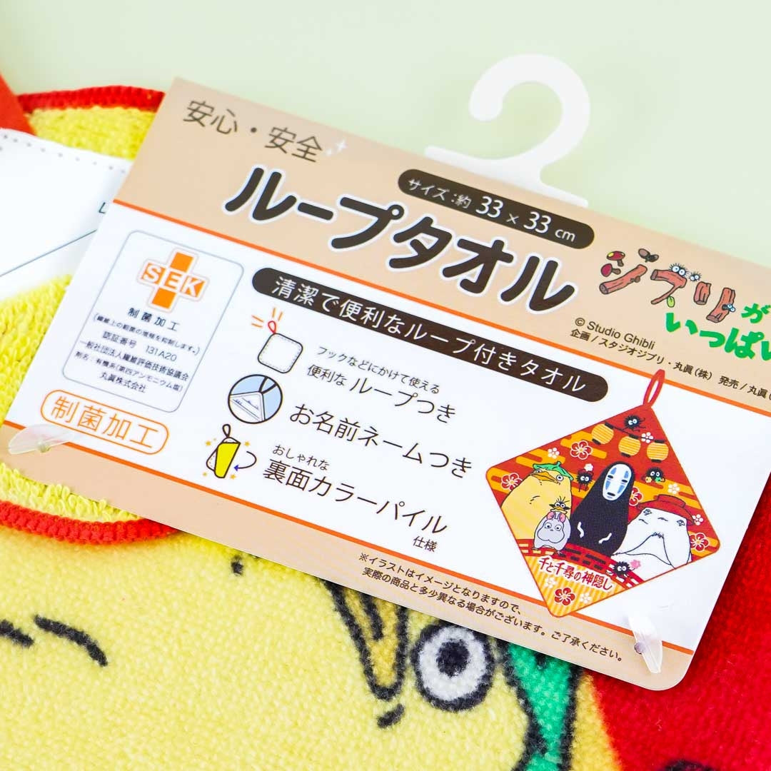 Use this kawaii hand towel to stay dry. It showcases a print of Spirited Away characters all gathered together! This towel also has a namespace at the back for you to use.