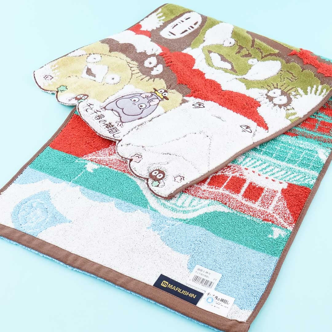 Quickly dry yourself off after a cold shower with this super cute towel made of pure cotton! It has kawaii illustrations of the different unique creatures seen in the movie “Spirited Away” like soot sprites, No-Face, Oshira-sama, Ootori-sama, and more in front of the bathhouse.