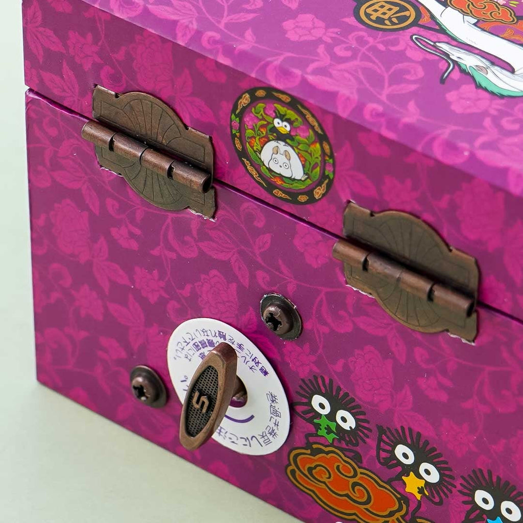 Enjoy listening to this super kawaii music box illustrated with characters from the Ghibli movie, Spirited Away. Turn the fern and open the box to see No-Face move to the music! This music box also has a drawer and a mirror.