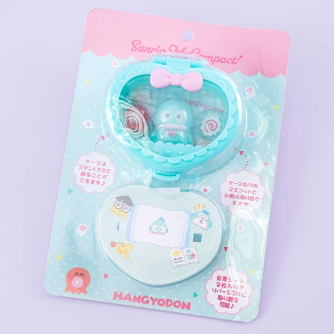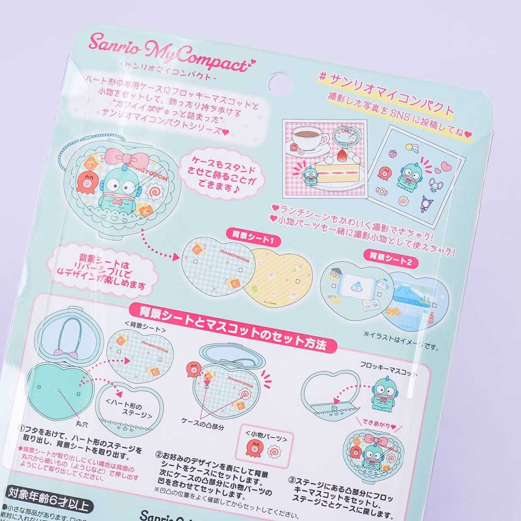Have fun customizing this kawaii compact Hangyodon toy set according to your preference or mood! The Hangyodon mascot and background can be taken out of the heart-shaped case. You can change the background and choose from the 2 sets of background sheets included. The sheets are reversible so you can enjoy a total of 4 designs. Hang it on your bag using its ball chain or display it in your room.