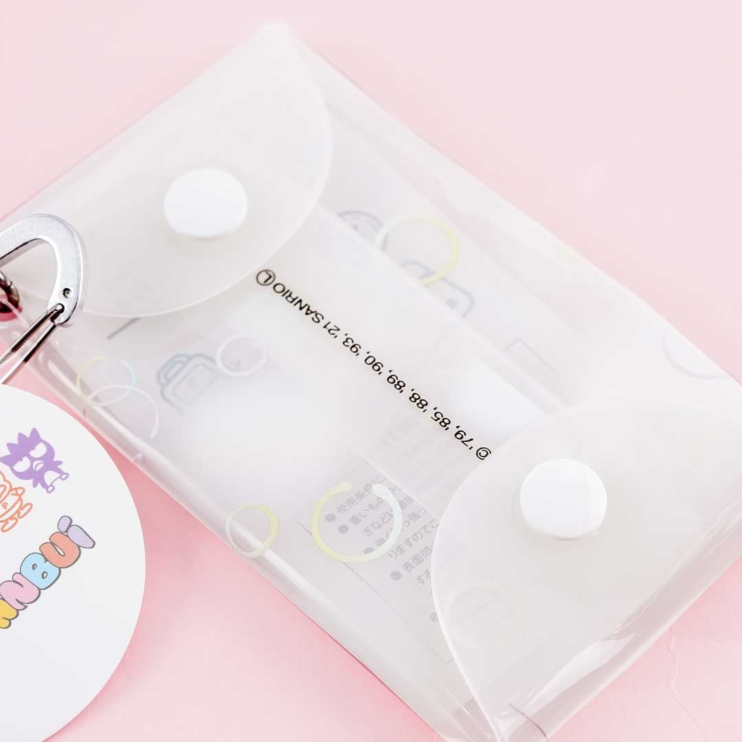 Store your trinkets inside this super cute transparent pouch! It is covered in prints of the Hapidanbui gang hanging on a clothesline! This clear pouch comes with a button closure and a metal carabiner for your keys!
