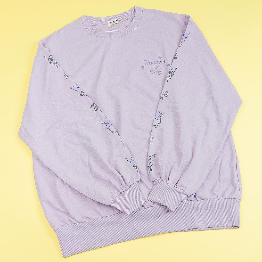 Keep yourself cute and warm during the changing seasons with this kawaii sweatshirt! It features super cute embroidery of Kuromi's name with heart-shaped cherries. This sweatshirt has long balloon sleeves lined with kawaii prints of Kuromi and her friends.