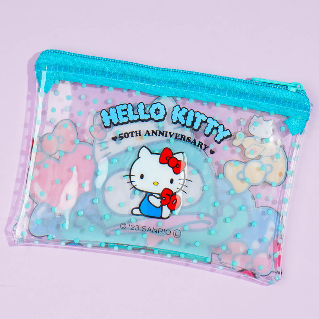 Store your loose change and receipts inside this cute flat pouch! It features a kawaii print of Hangyodon dressed in a Hello Kitty costume! The unique design for this transparent soft case was specially created for Hello Kitty’s 50th anniversary!