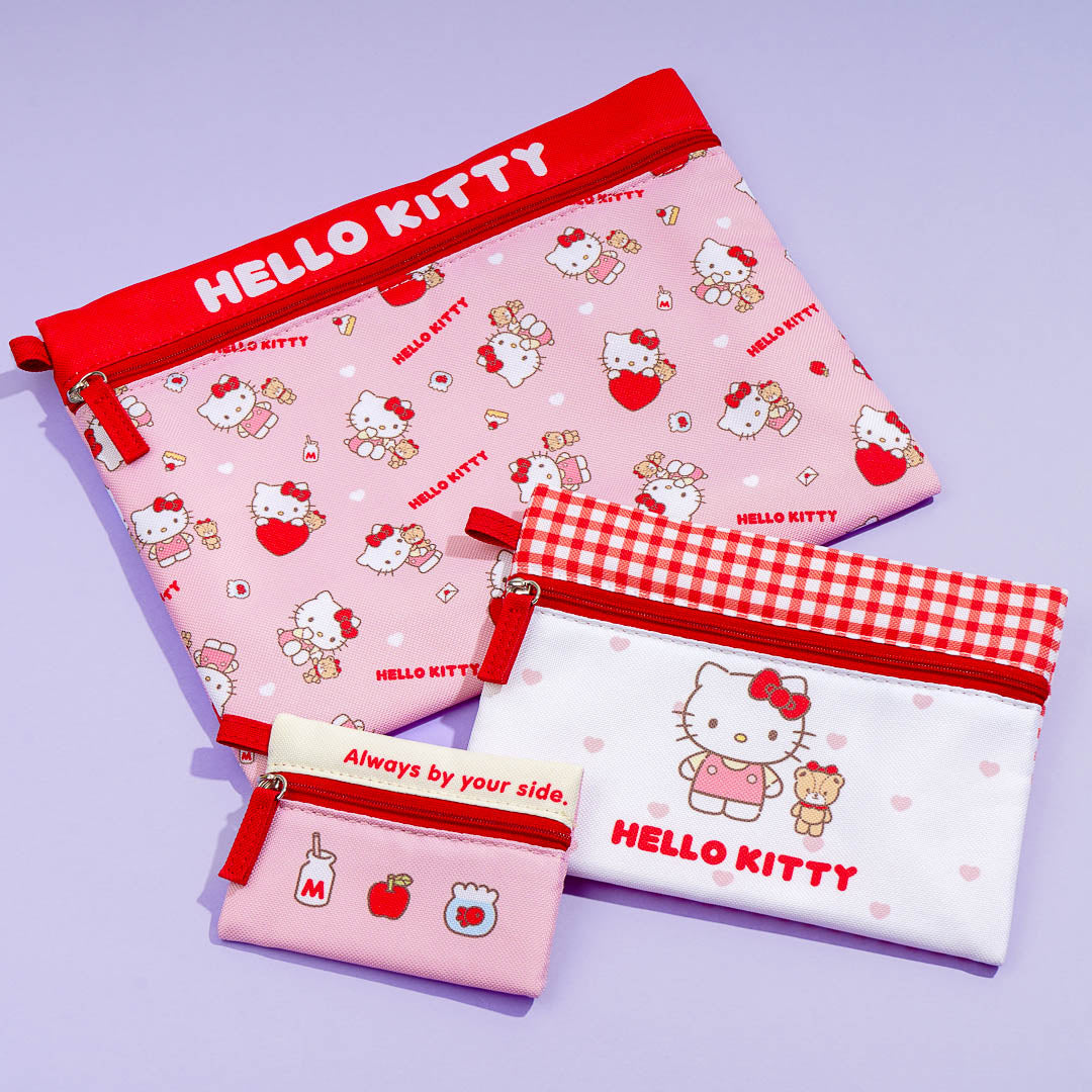 Organize your things with the help of this cute set of flat pouches. They feature prints of Hello Kitty hanging out with her buddy, Tiny Chum! Each pouch has a zipper closure to make sure your things are safe and secure.