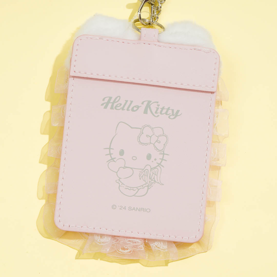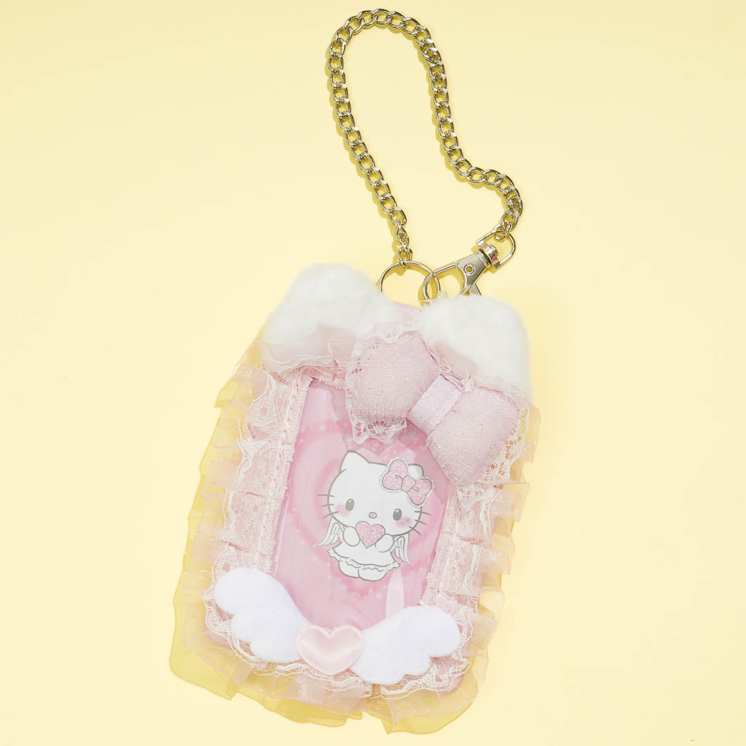 Add a cute and elegant touch to your ID or bus pass using this super kawaii card holder! It features a heavenly design with laces, wings, and Hello Kitty looking like an angel. This card holder also has a metal chain that you can hook to your backpack!