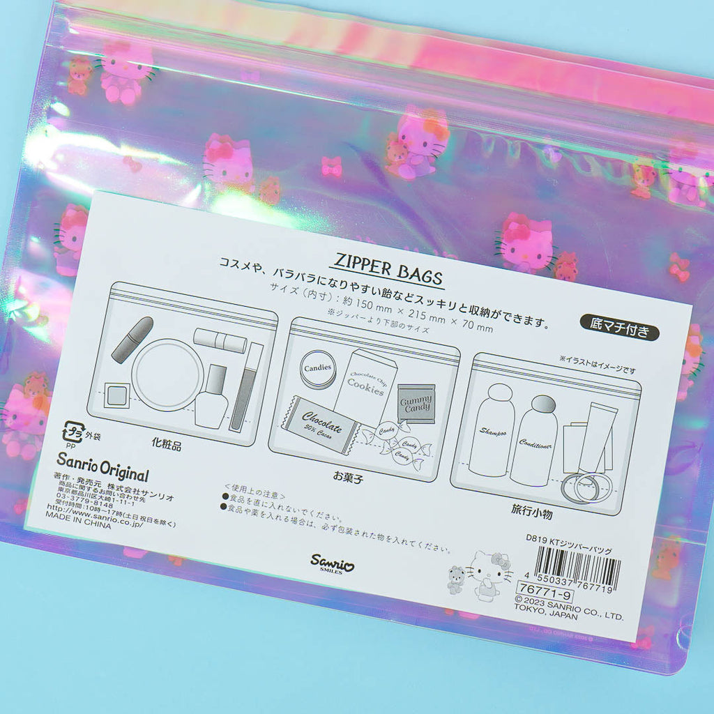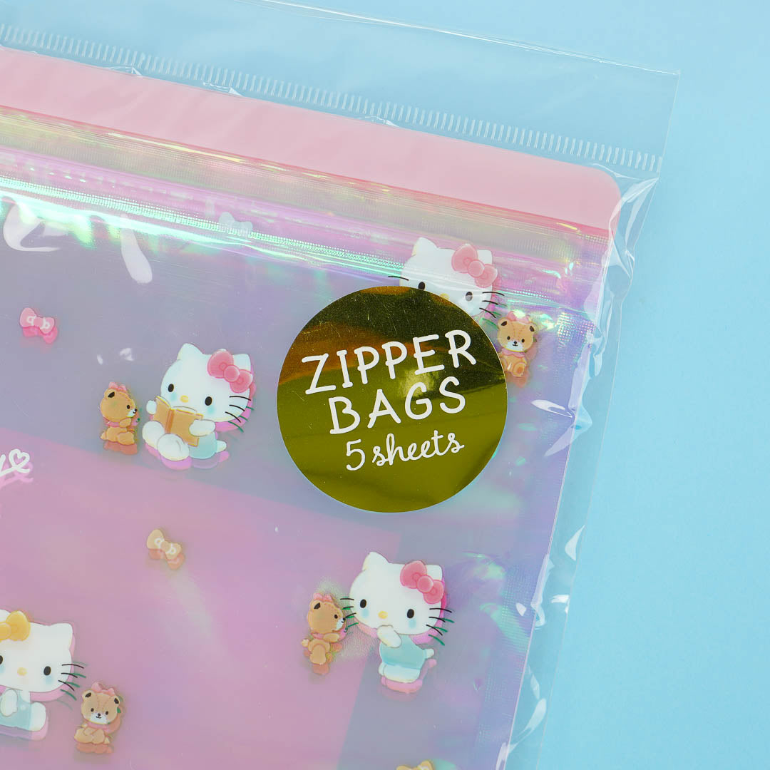 Organize your cosmetics, trinkets, or even snacks using this cute set of resealable bags. Each pouch is decorated with kawaii Hello Kitty prints and features a holographic finish that resembles the aurora borealis!