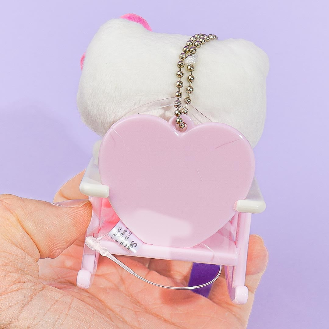 Kawaii-fy your room with the help of this cute baby Hello Kitty plushie charm! This mini-sized cutie is sitting on a rocking chair. You can take it out of the chair to play with it! Attach it to your bag with its removable ball chain.