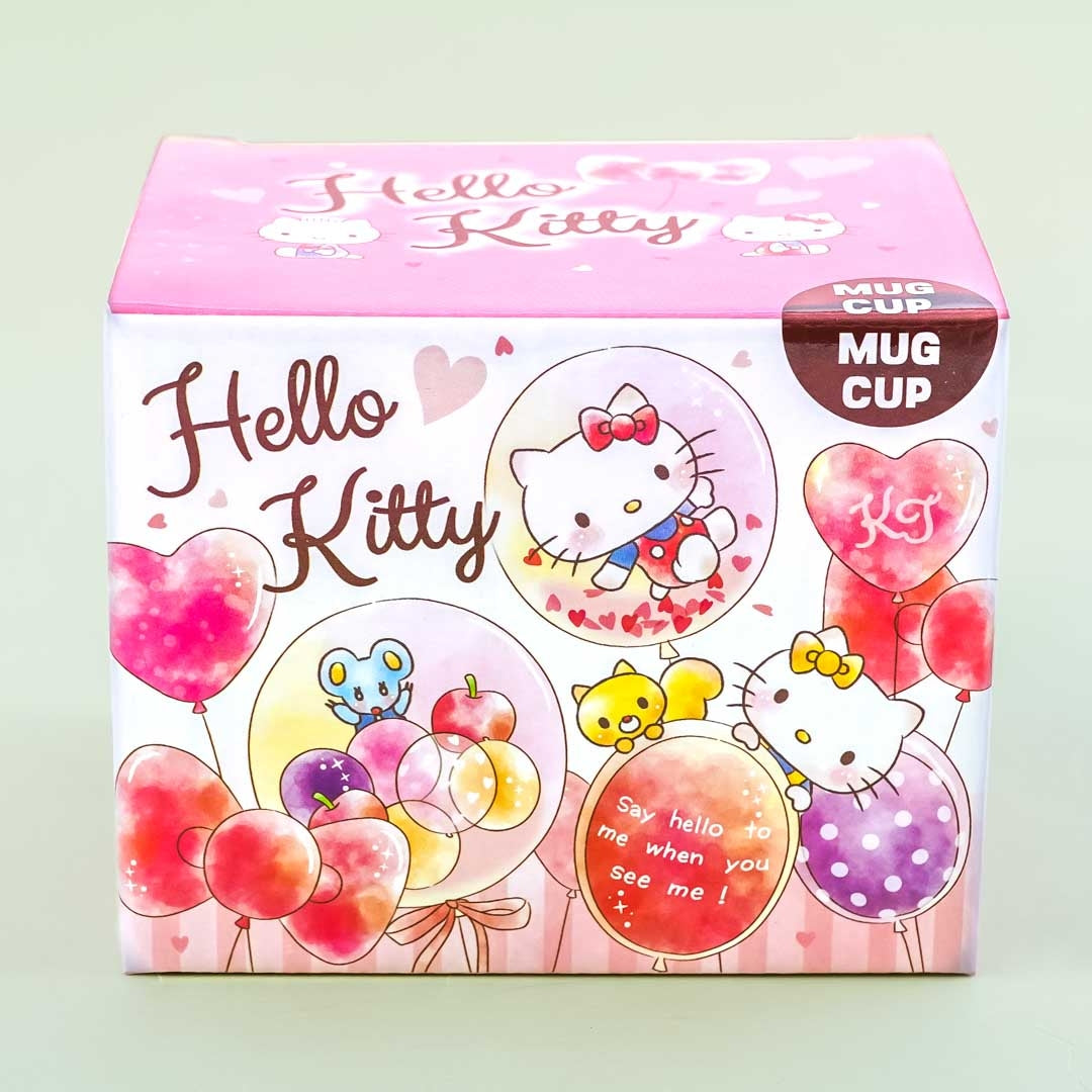 Use this super cute mug for your favorite hot or cold beverage! It’s made of durable ceramic and has prints of Hello Kitty and Dear Daniel surrounded by watercolor-painted balloons.