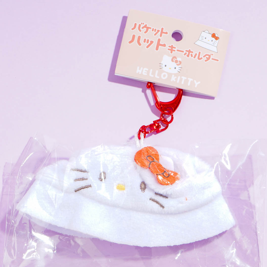 This super cute keychain is shaped like a bucket hat and features Hello Kitty's face! Attach it to your keys for a dose of cuteness. It also doubles as an accessory for small plushies!