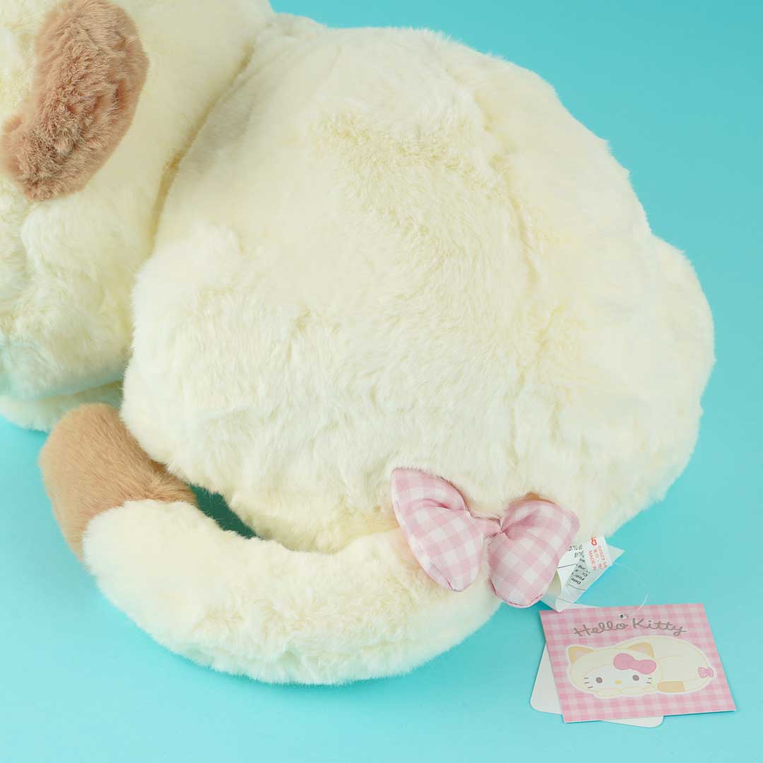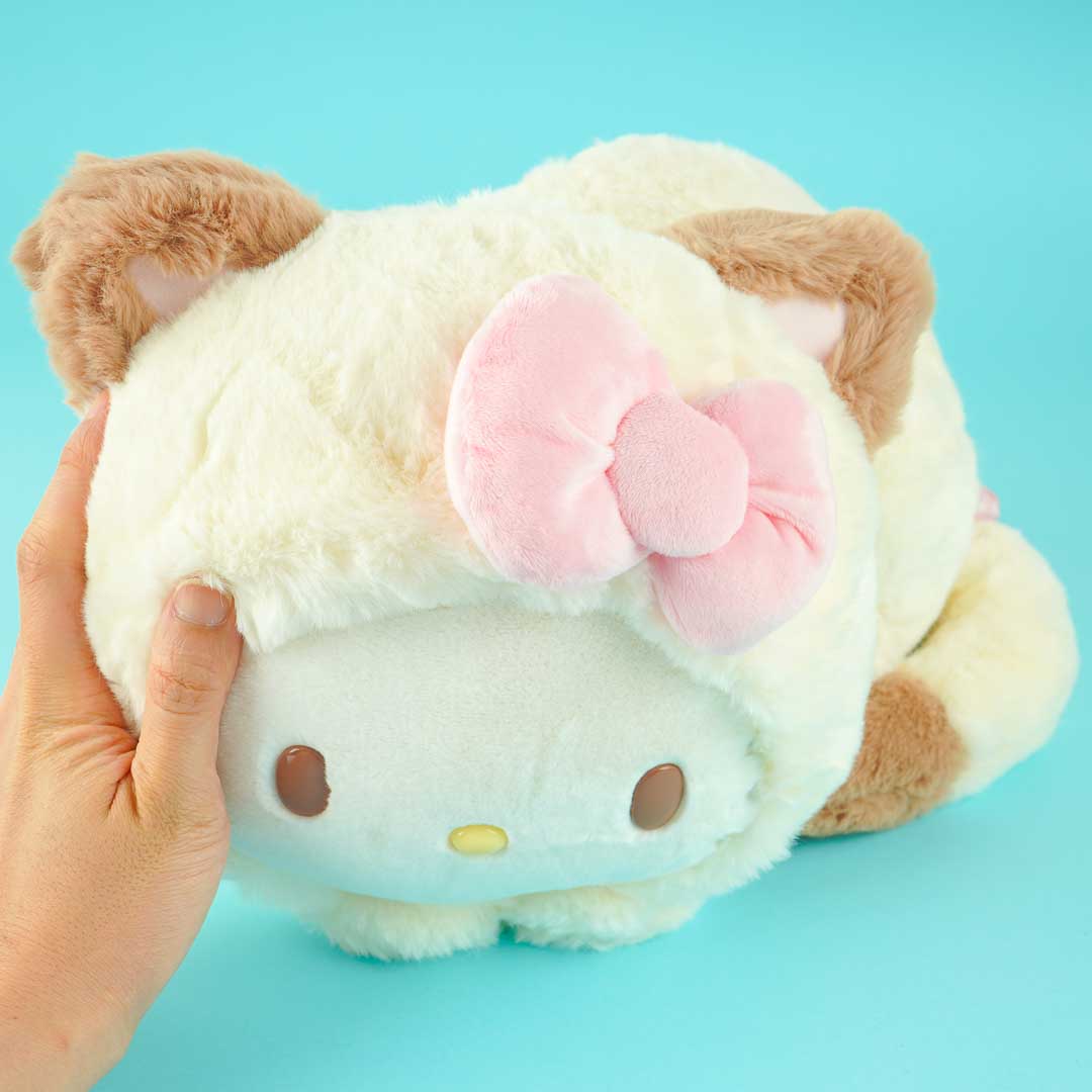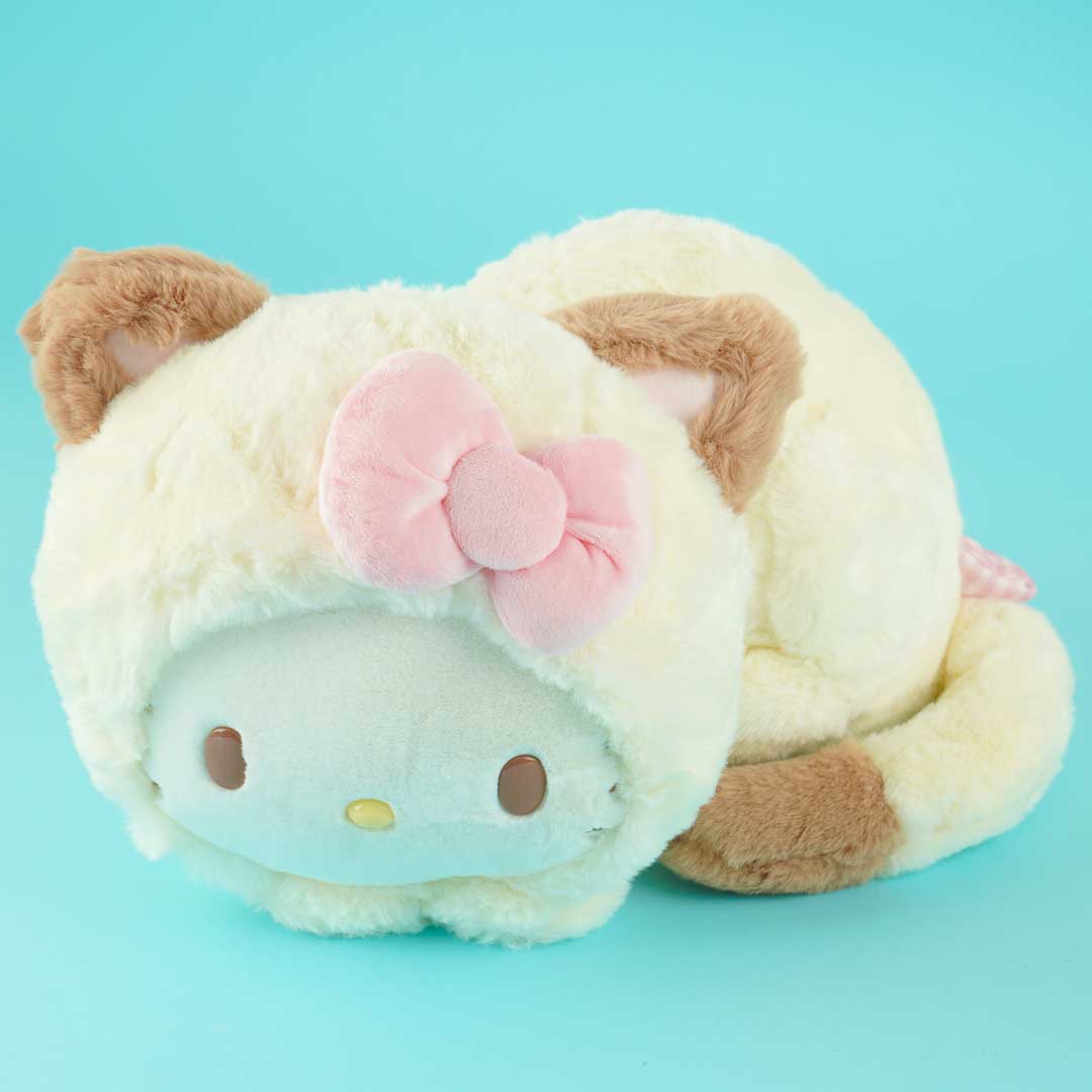 Add this Hello Kitty cushion to your collection! This cutie is wearing a beige cat costume and is made from fluffy material. It's the perfect decor for your bedroom or for your couch!
