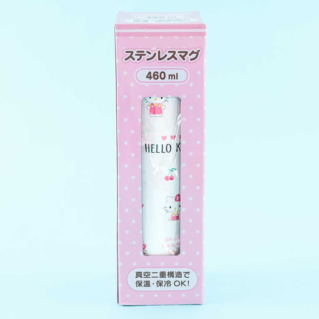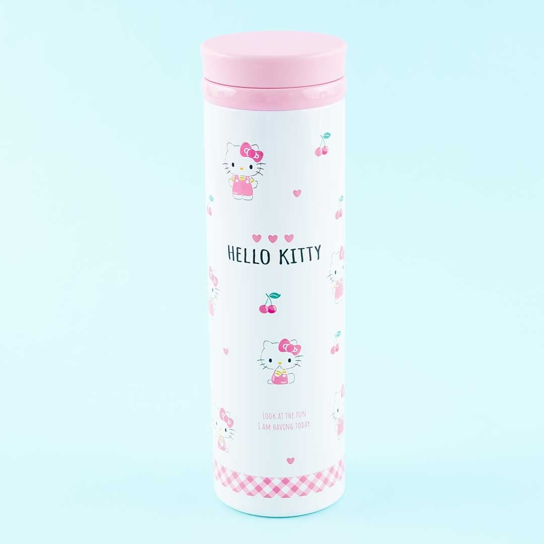 • A super kawaii lightweight stainless steel bottle featuring prints of Hello Kitty, cherries, and hearts