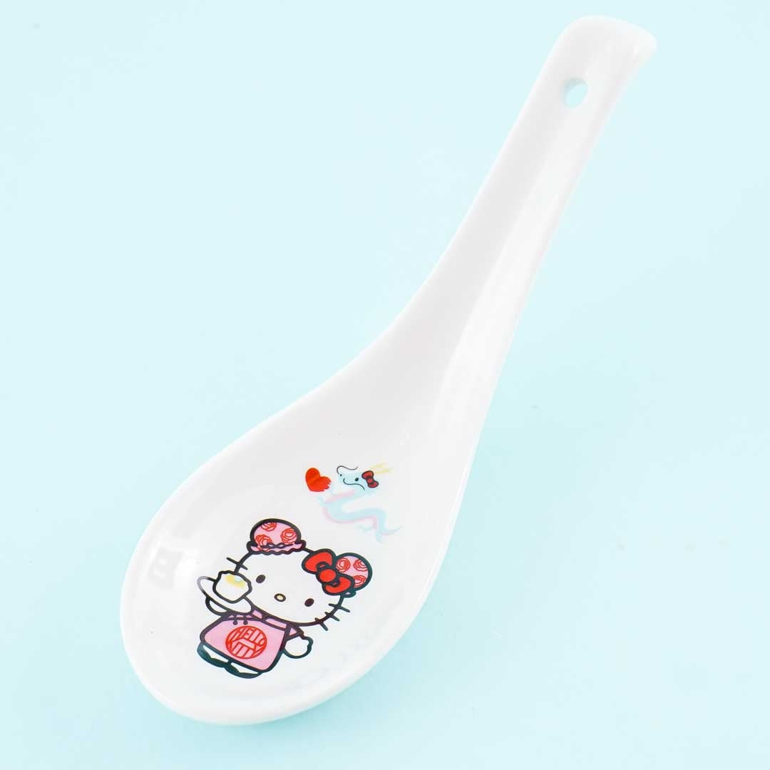 Serve your favorite sauce for dinner using this cute dressing spoon! It features a print of Hello Kitty dressed as a Chinese girl with a dragon flying above her head. This ceramic spoon can be used in the microwave.