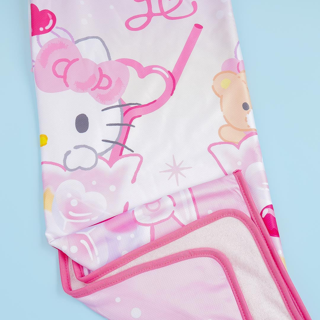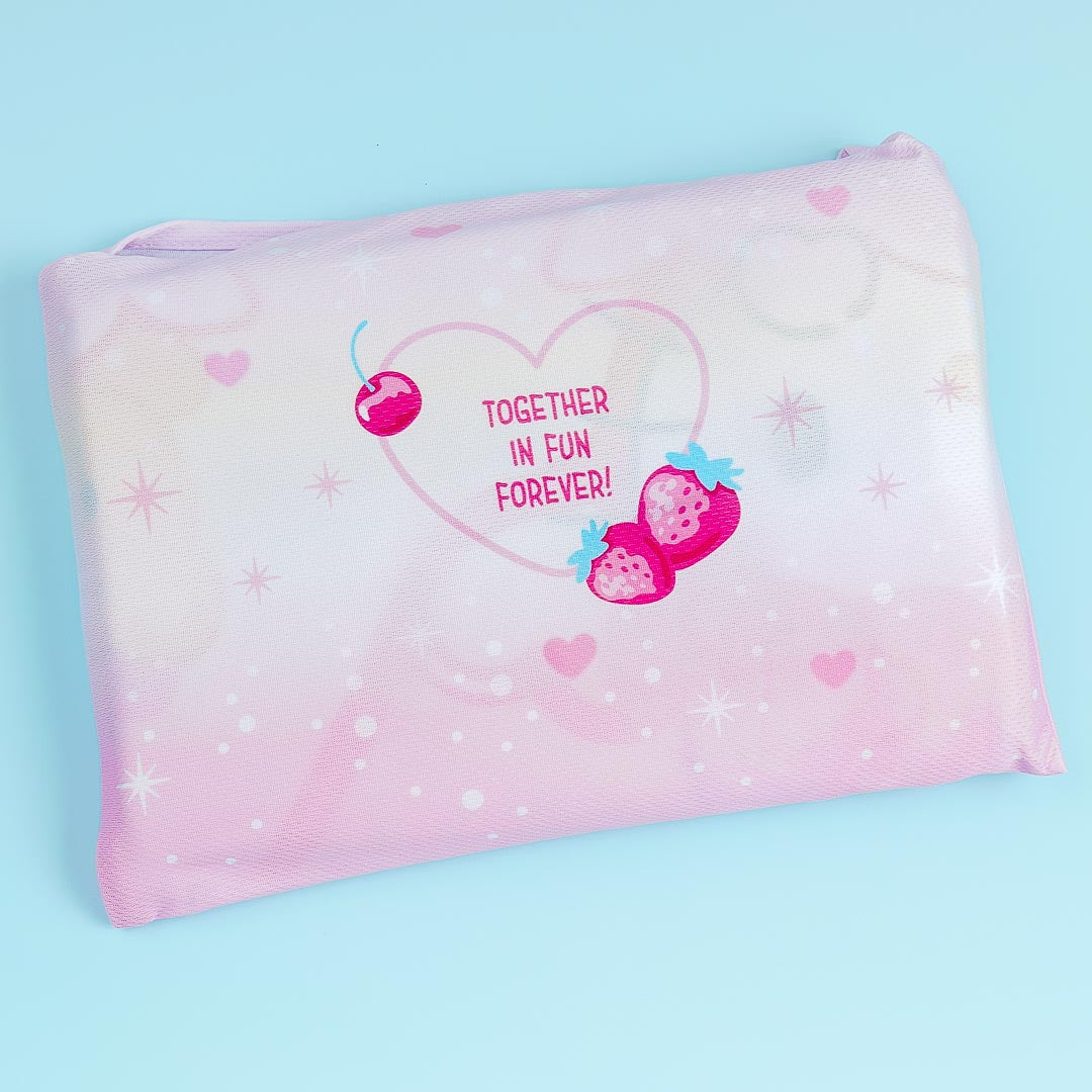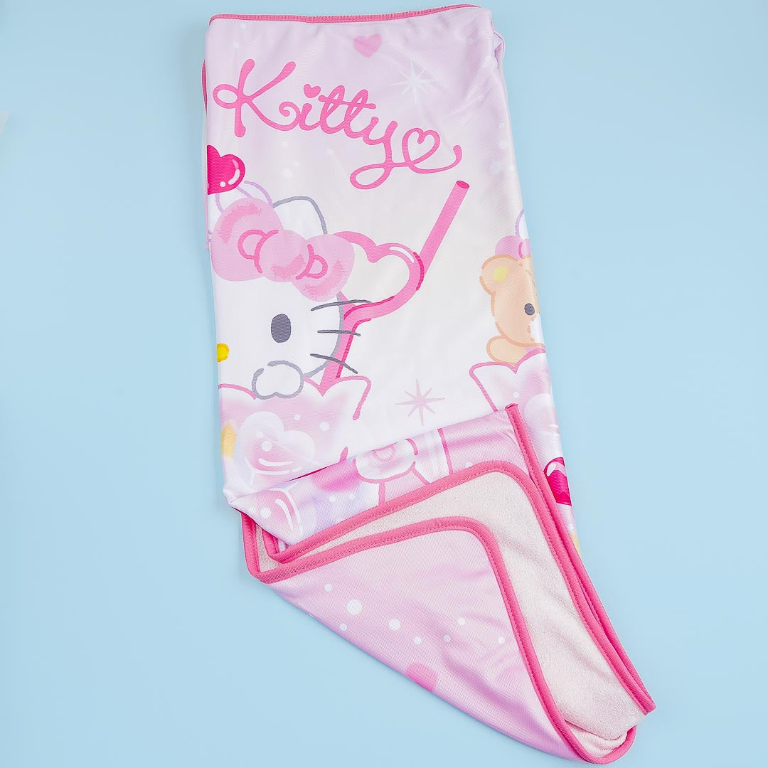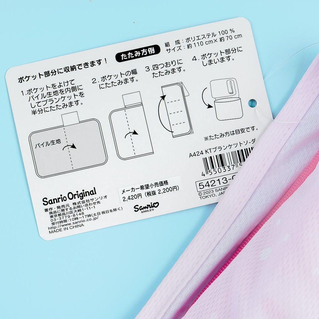 Take a comfy nap with this cute breathable blanket. It features cute prints of Hello Kitty with her bear friends in glasses of cream soda. The blanket also has a pocket you can fold the blanket into.