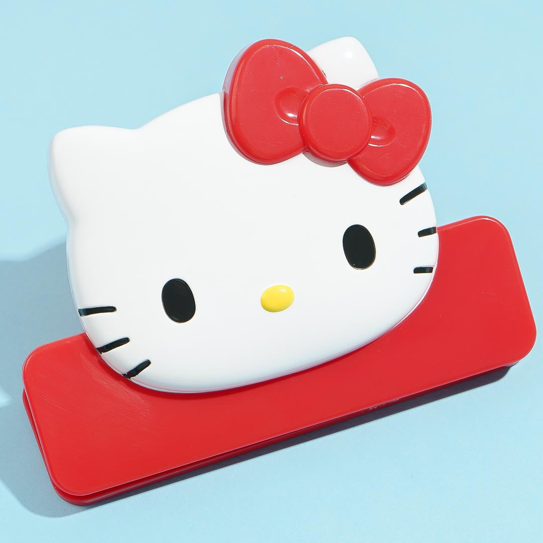Use this kawaii memo clip to organize your school papers! It features a cute die-cut illustration of Hello Kitty's face and comes with rubber strips so it doesn't leave any markings.