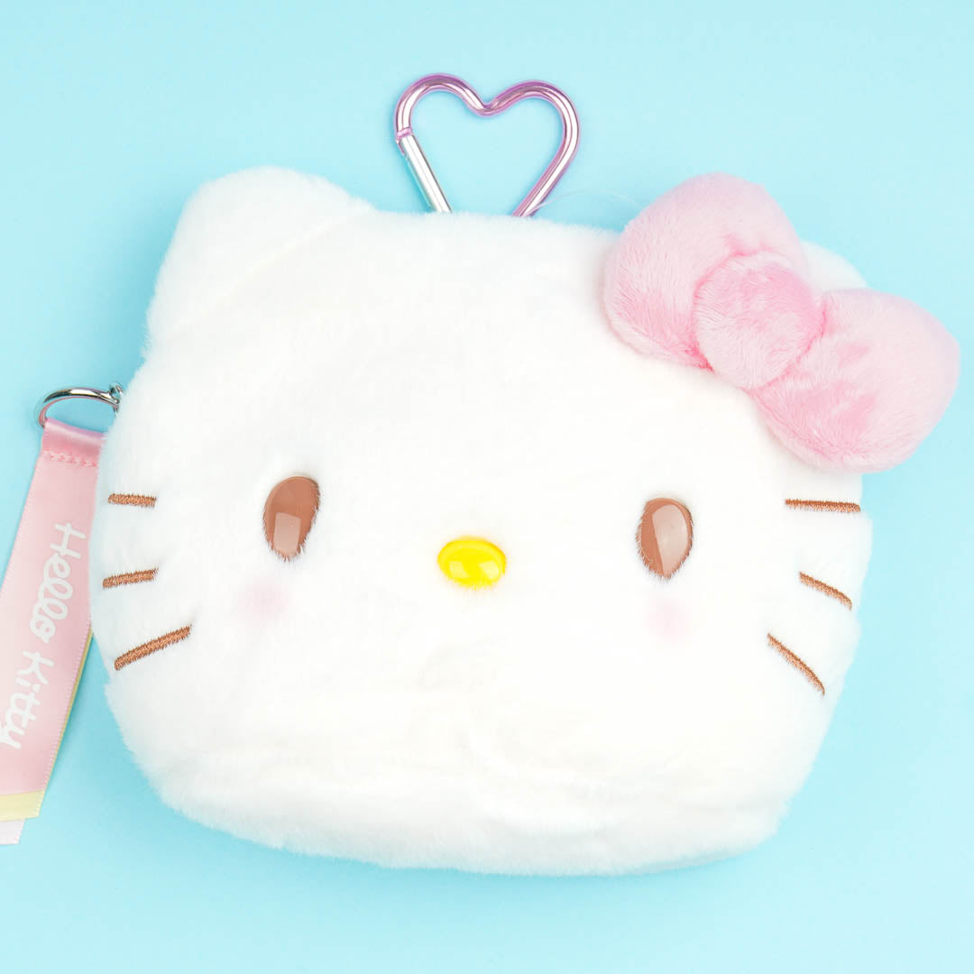 This kawaii and fluffy Hello Kitty plushie face pouch has a special transparent window at the back so you can check and secure your essentials without opening it! Store your earphones or any other small items inside.