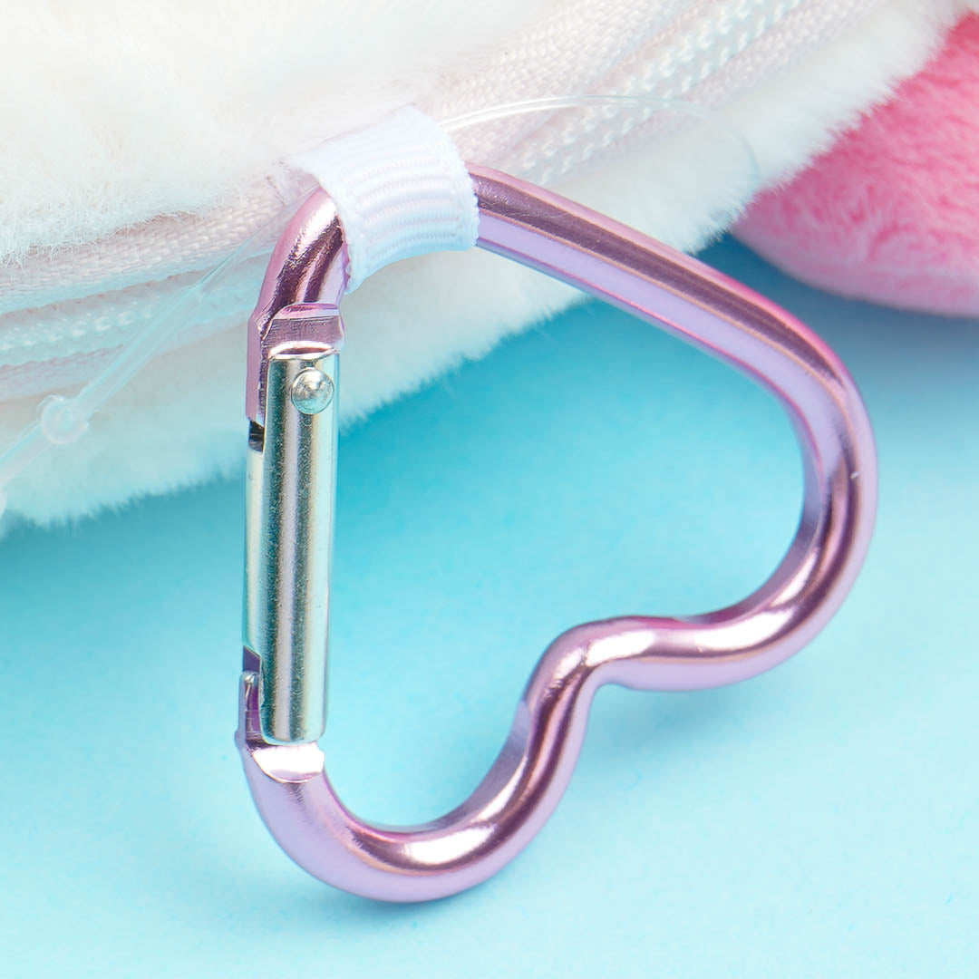 • Comes with a zipper closure and a heart-shaped metal carabiner