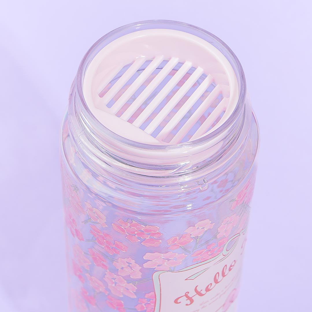 This transparent bottle is covered in prints of flowers and Hello Kitty! It features a wide mouth and a strainer so you can easily make delicious flavored water by adding fruits and ice.