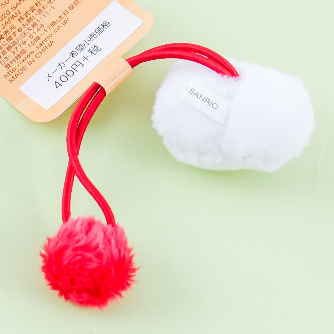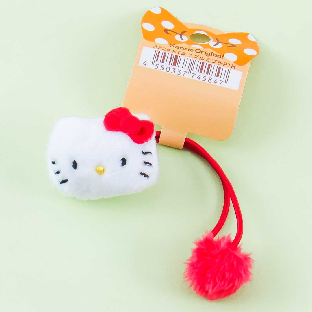• An elastic hair tie with a soft charm shaped like Hello Kitty’s head