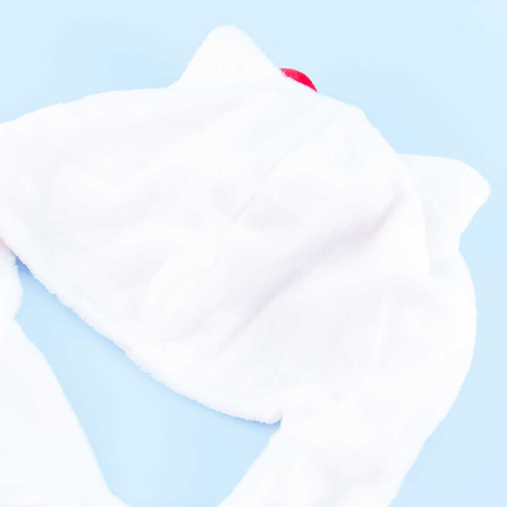 Add a dose of kawaii to your wardrobe with this super cute fluffy hat! It's shaped like Hello Kitty carrying flags in its hand. Push the button on the long tip of the hat to make Hello Kitty's hands move and cheer for you!