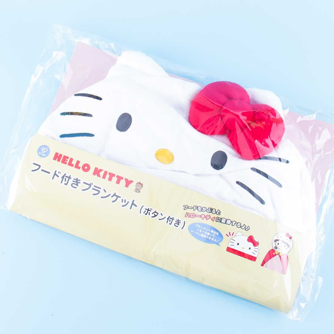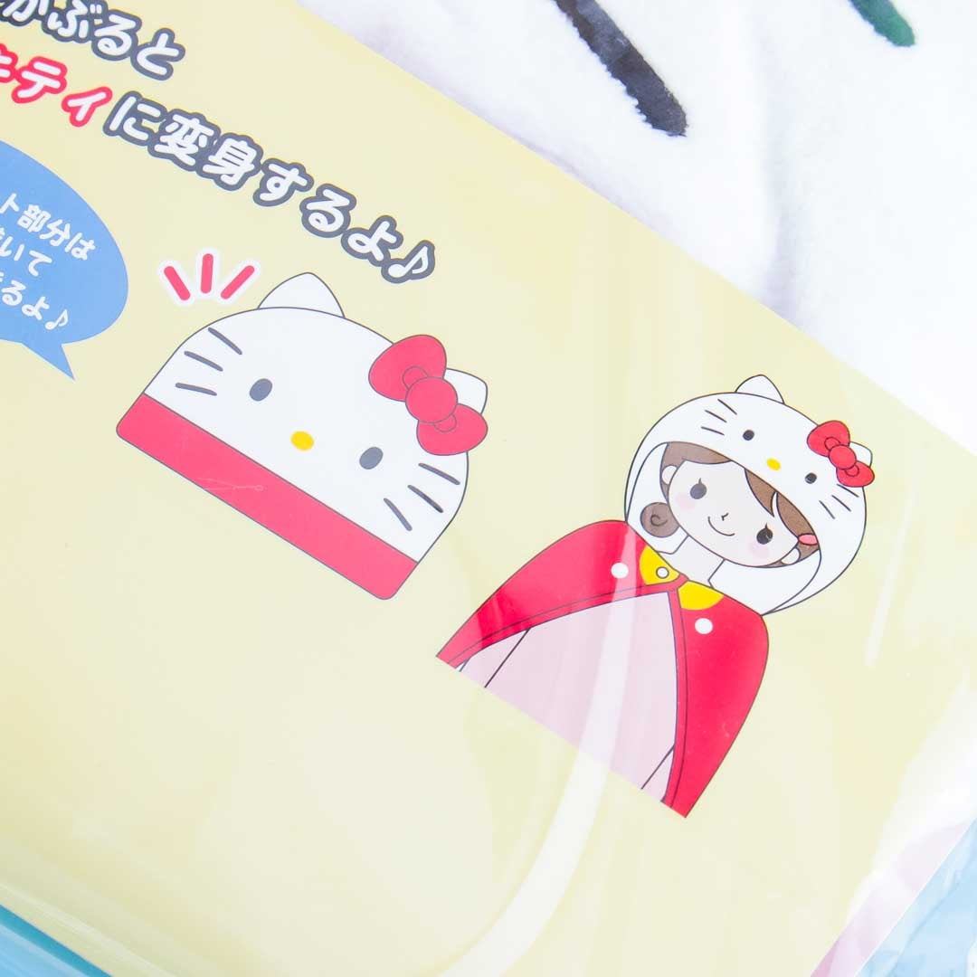 A cute large hooded blanket with a detachable Hello Kitty character hood