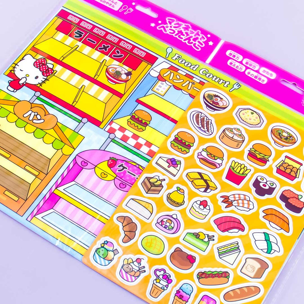 A kawaii magnet picture book set featuring Hello Kitty at the food court