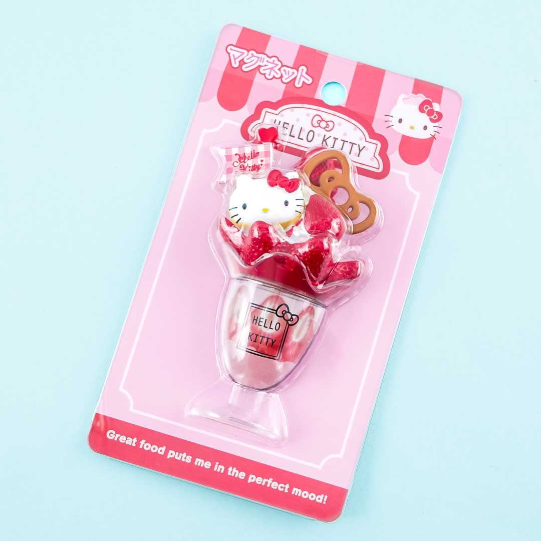 • A super cute magnet featuring Hello Kitty as a gourmet strawberry parfait