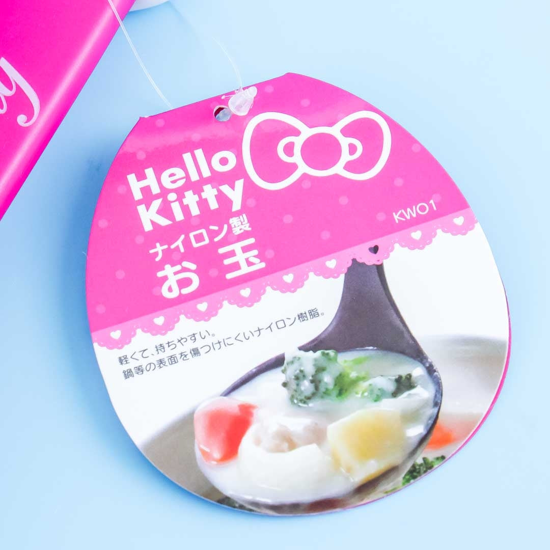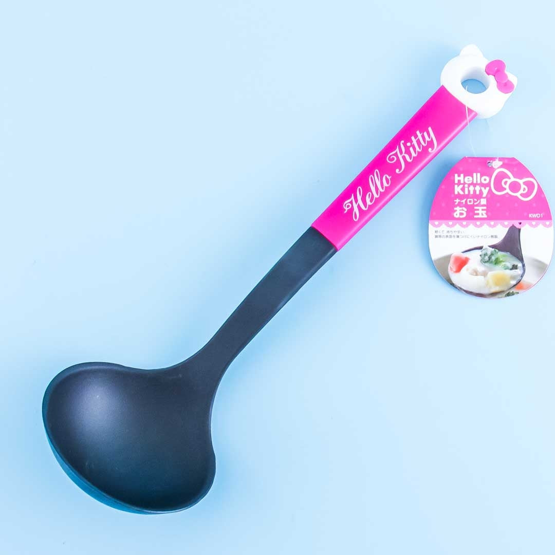 A kawaii ladle featuring a Hello Kitty Name print on the handle