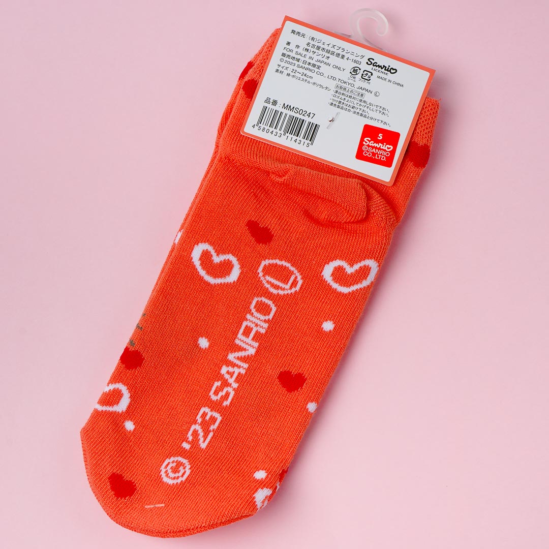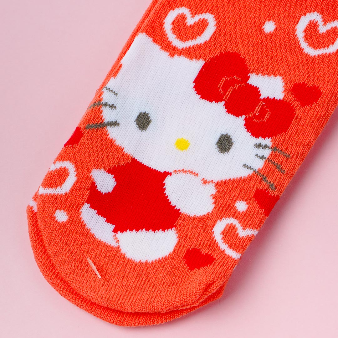 Be comfy when you nap with this pair of kawaii socks! It features a cute print of Hello Kitty with a background full of hearts and a bowtie on top.