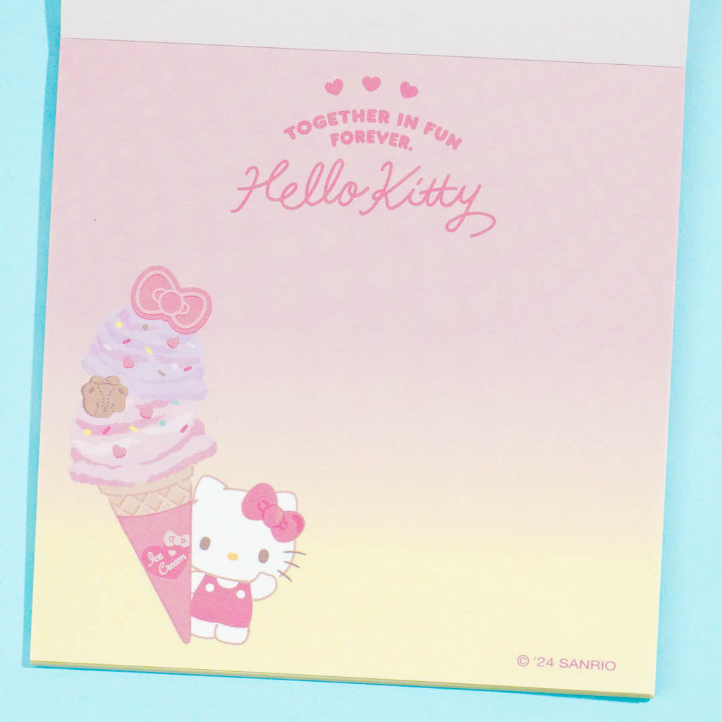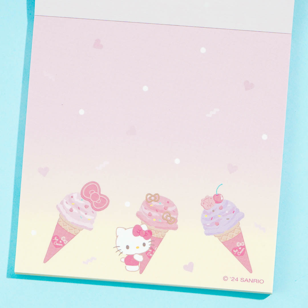 This cute memo pad is decorated with prints of Hello Kitty riding on a giant cone of ice cream! Use it to write down important notes and reminders. It's the perfect addition to your kawaii stationery collection.