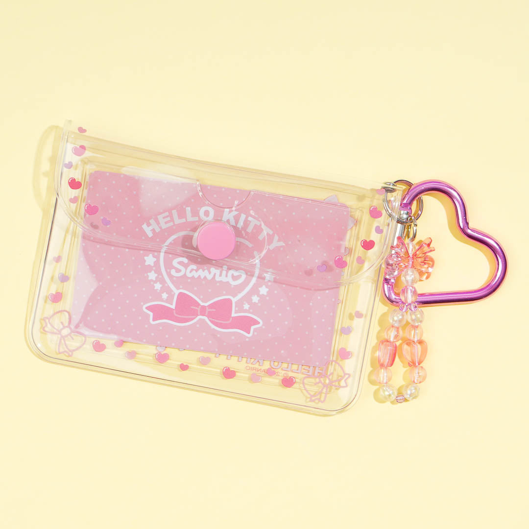 Keep your ID safe using this super cute card case! It features prints of ribbons, hearts, and  Hello Kitty. Inside is Hello Kitty's ID card. You can attach it to your bag or to your favorite pouch with its heart-shaped metal carabiner. This cute card case also comes with a beaded charm!