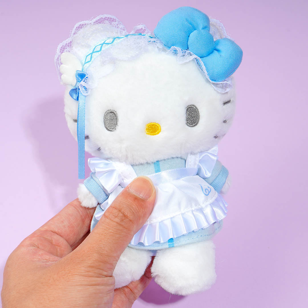 This kawaii medium-sized Hello Kitty plushie charm comes from Sanrio's Light Blue Days series. Take it with you when you head to the next convention! It's wearing an adorable sky-blue outfit.