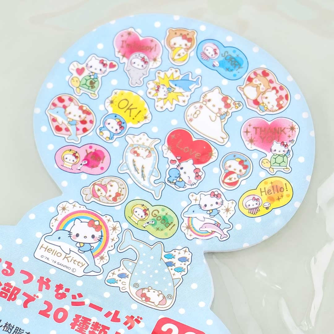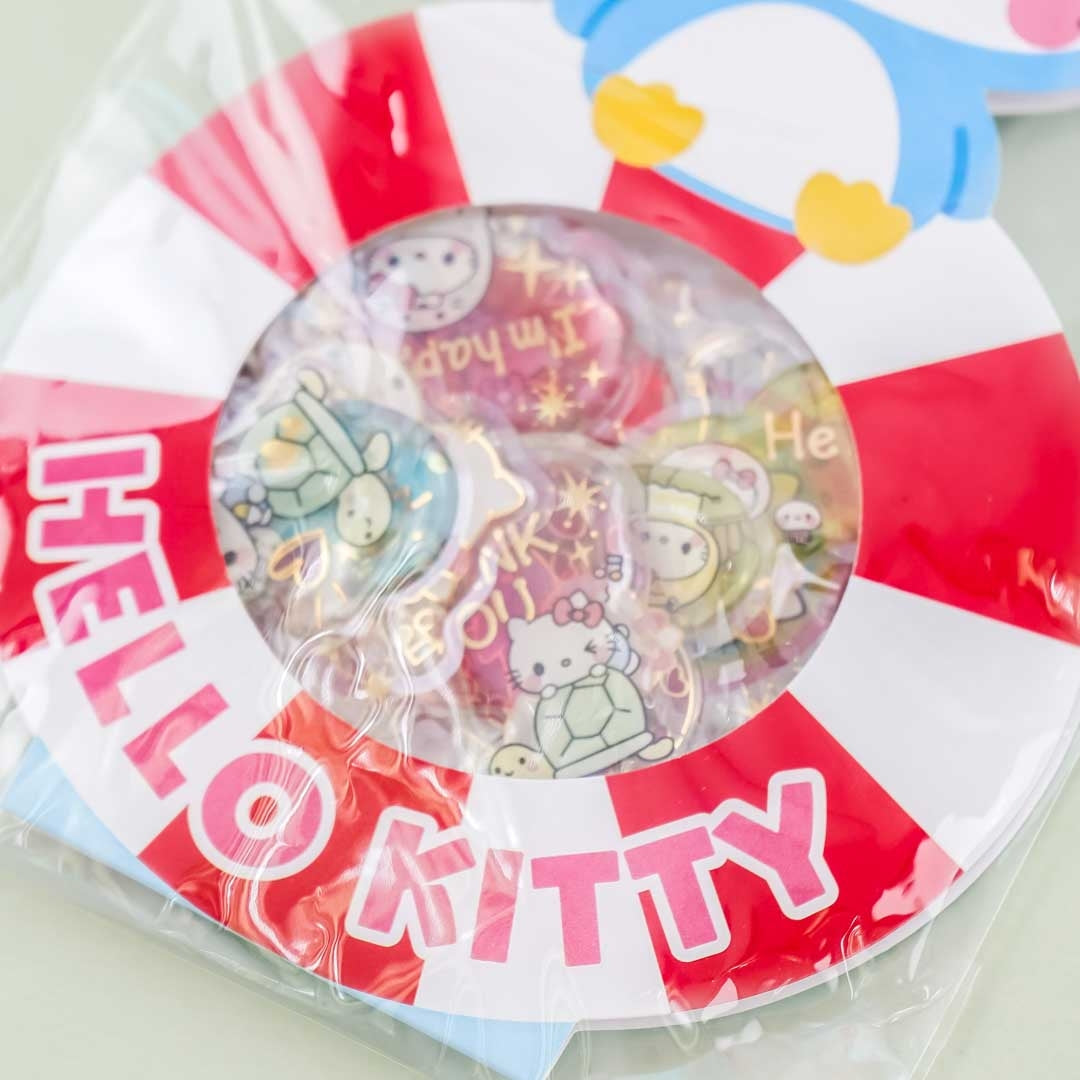 A pack of die-cut puffy deco seals featuring Hello Kitty and her sea animal friends