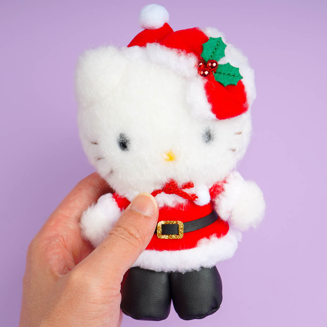 Celebrate Christmas with this super cute Hello Kitty plushie! It features a kawaii Santa Claus outfit and a removable ball chain that can be attached to your bag or purse.